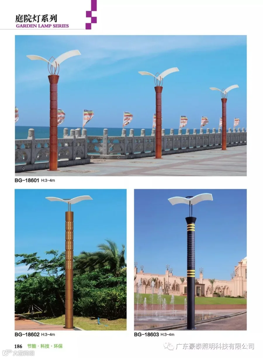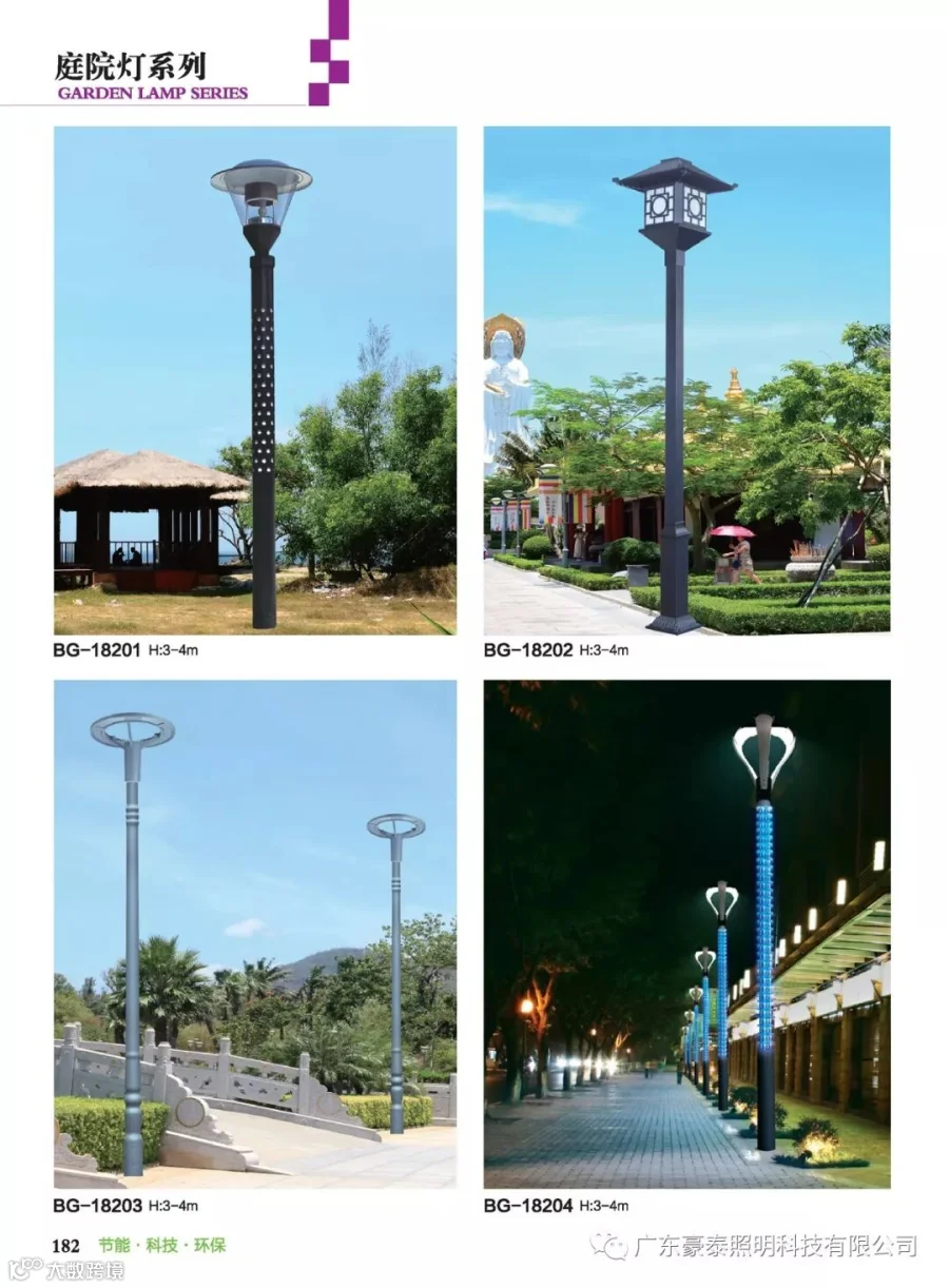 庭院灯其具有多样性、美观性具有美化和装饰环境的特点,所以也被称之为景观庭院灯。主要应用于城市慢车道、窄车道、居民小区、旅游景区,公园、广场等公共场所的室外照明,能够延长人们的户外活动的时间,提高财产的安全。