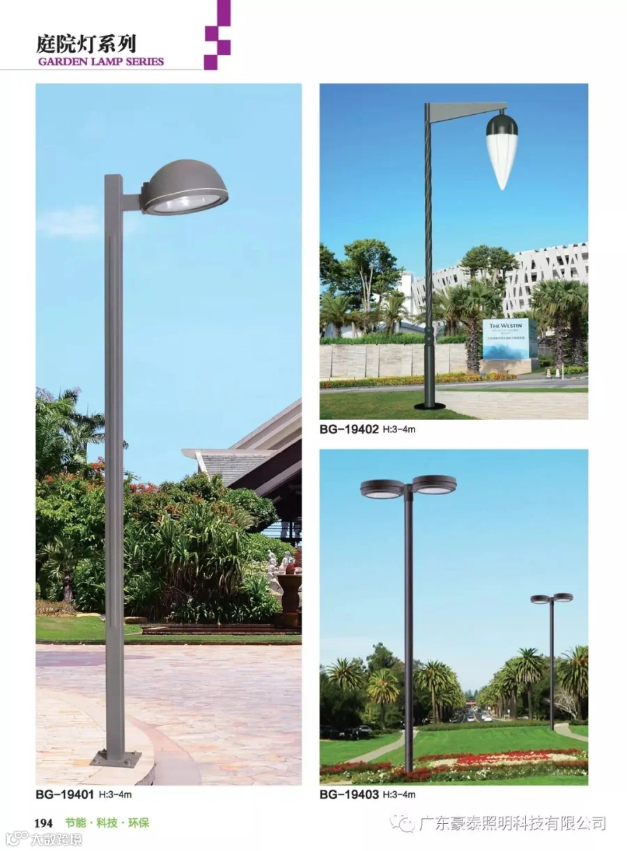 这三种类型的庭院灯,代表着不同的风格,也是大多数生产厂家为了迎合城市建筑物的设计风格,衍生而成。