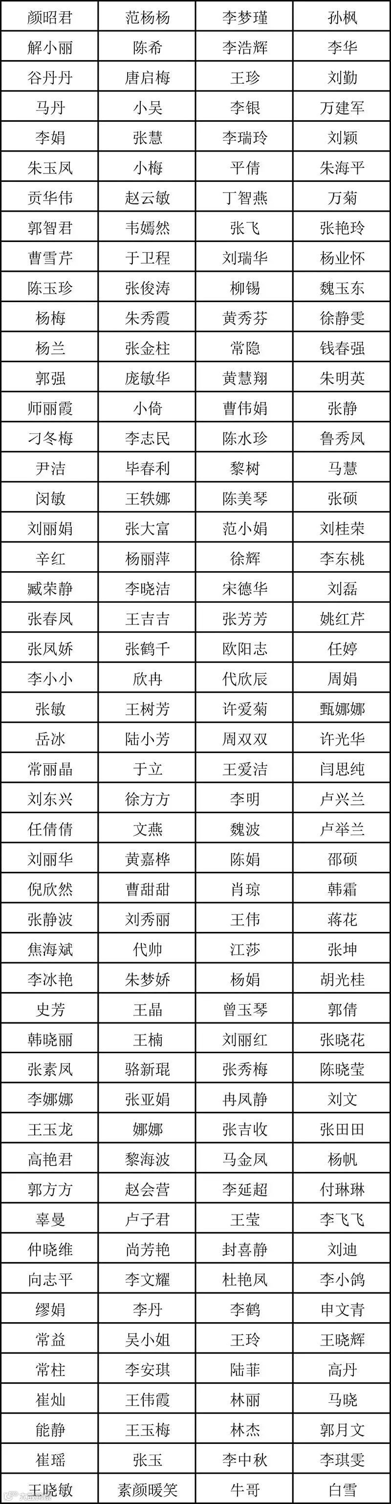 200名小伙伴名单: