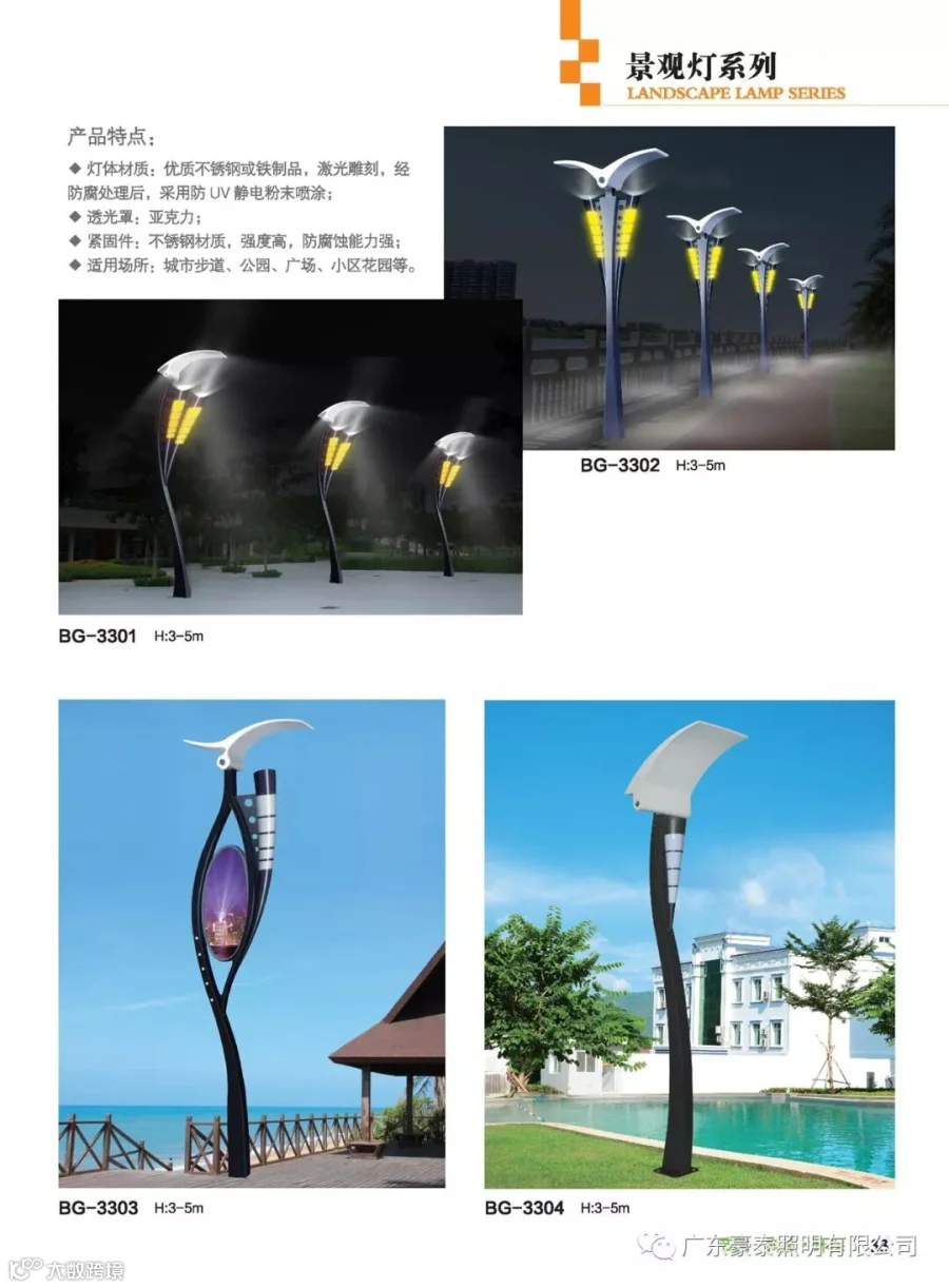 步道与庭院灯实际上是两类灯的结合,庭院灯注重景观性,步道灯注重功能性,这两者本可以分开各自形成自己的体系,但是经过考虑,还是把两者融合在一起,归结为步道庭院灯。