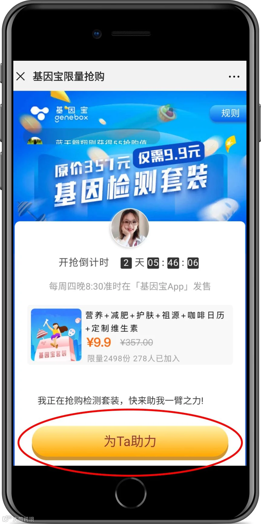 原价357元基因宝套餐,限时9.9元。