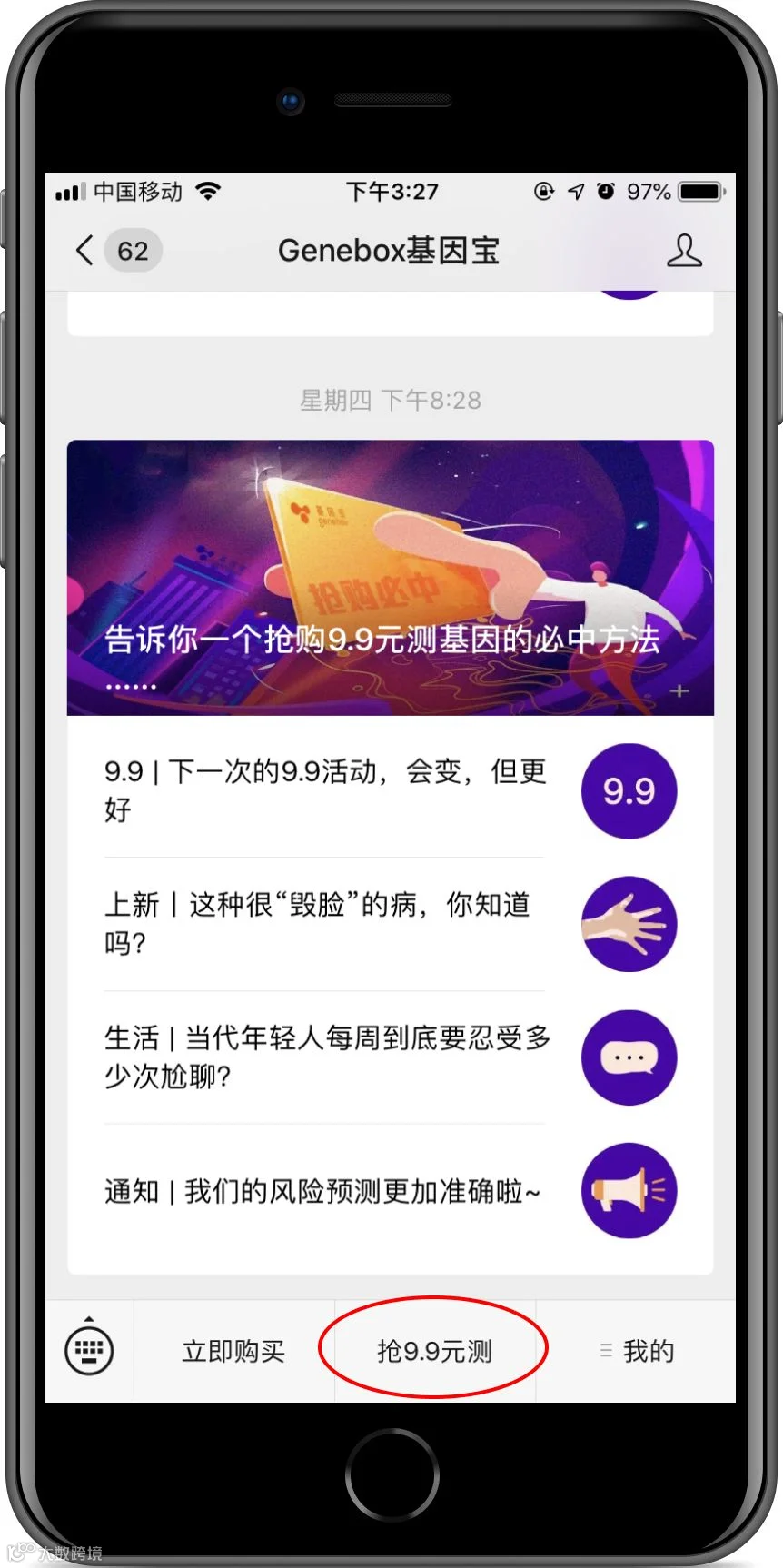 可直接购买9.9元测基因福利