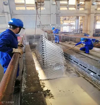 表面处理工段员工在450℃高温的锌炉边,员工毫不畏惧做好质量和锌耗控制