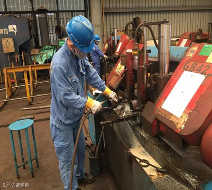 下料加工工段员工用机械切割后进行修磨,确保装配精度