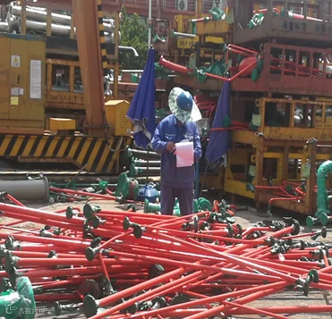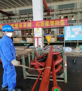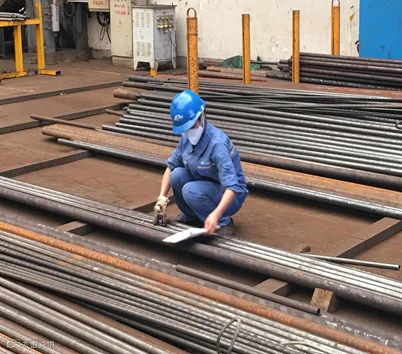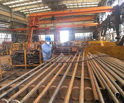 表面处理工段员工对黄船海工表面处理后管子按客户要求进行集配分托