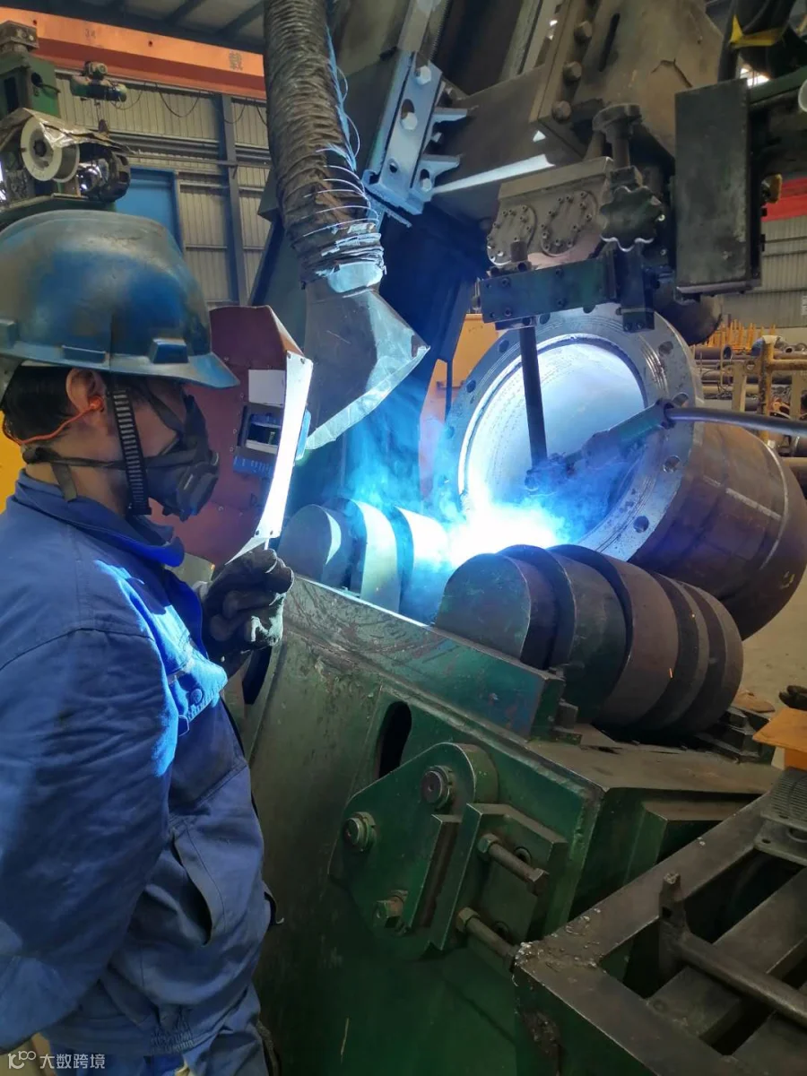 大管工段焊接工人充分利用半自动焊接,确保焊接质量