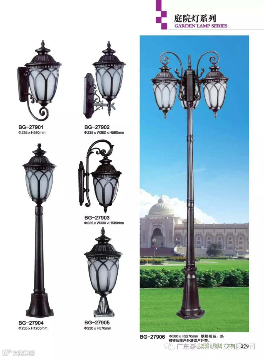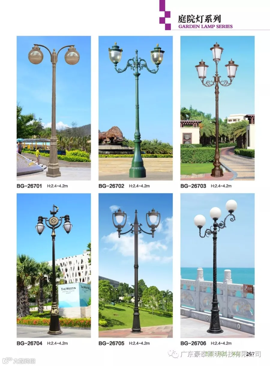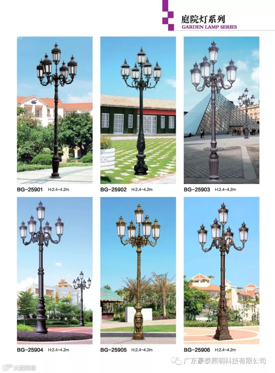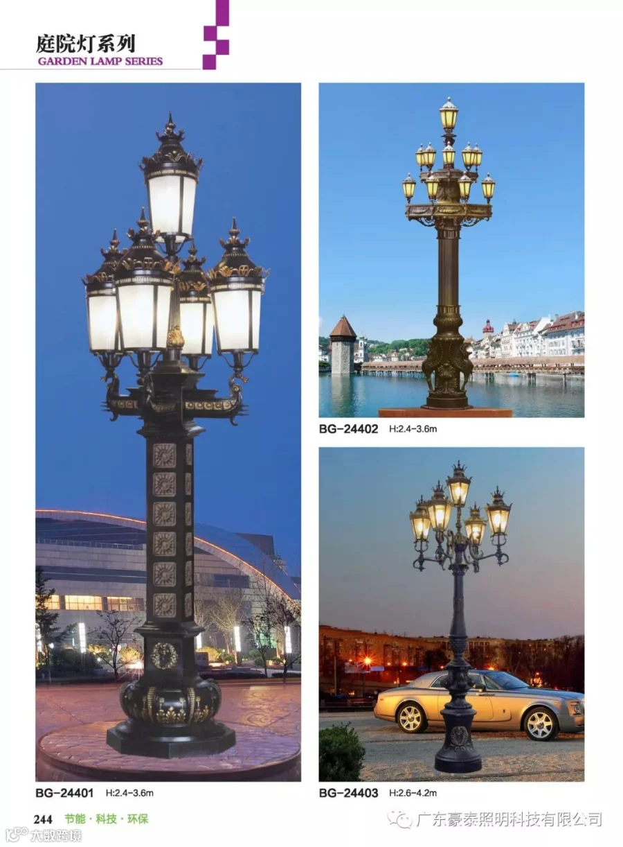 这三种类型的庭院灯,代表着不同的风格,也是大多数生产厂家为了迎合城市建筑物的设计风格,衍生而成。
