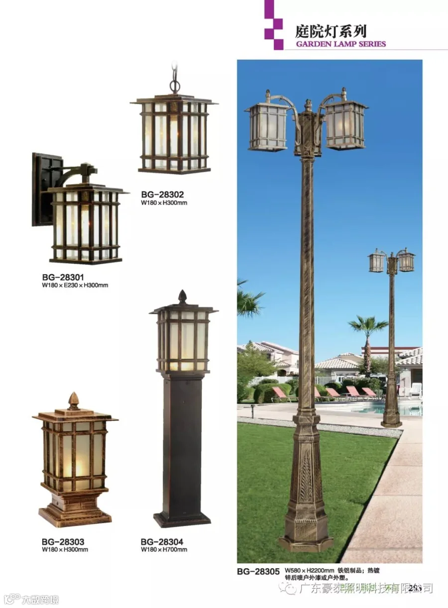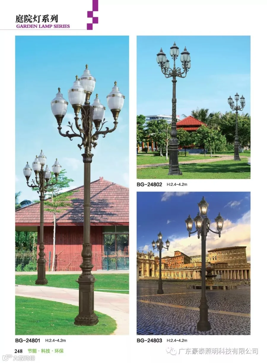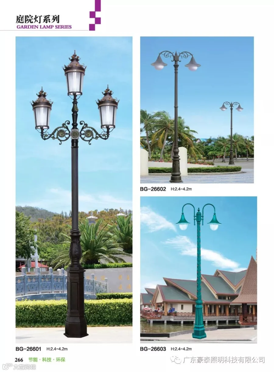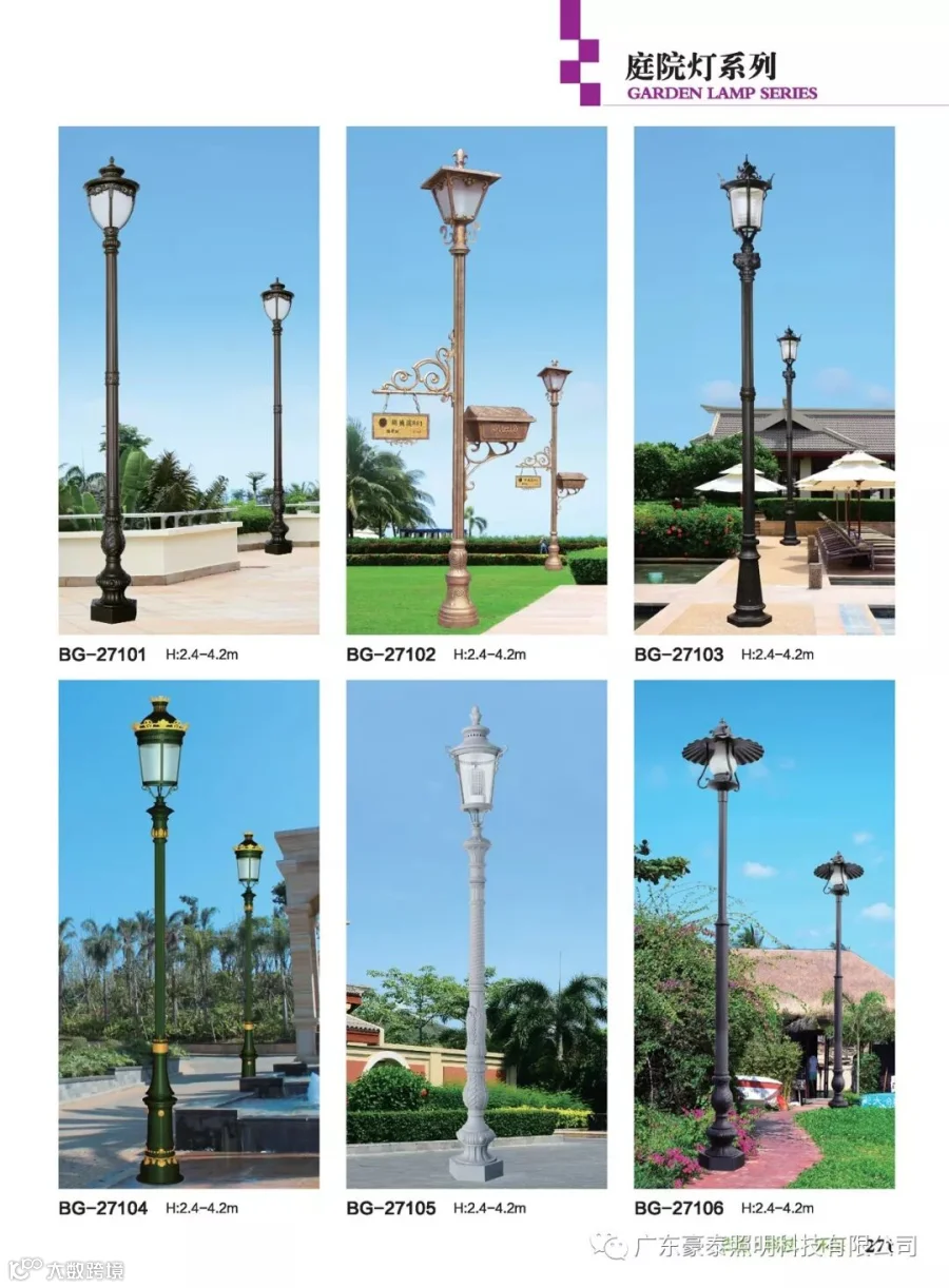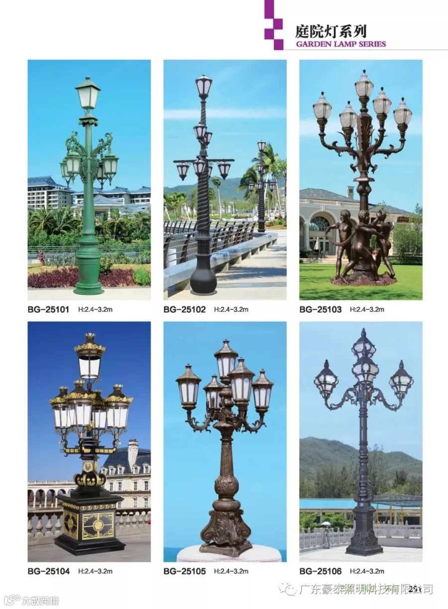 这三种类型的庭院灯,代表着不同的风格,也是大多数生产厂家为了迎合城市建筑物的设计风格,衍生而成。