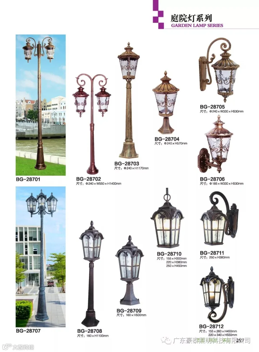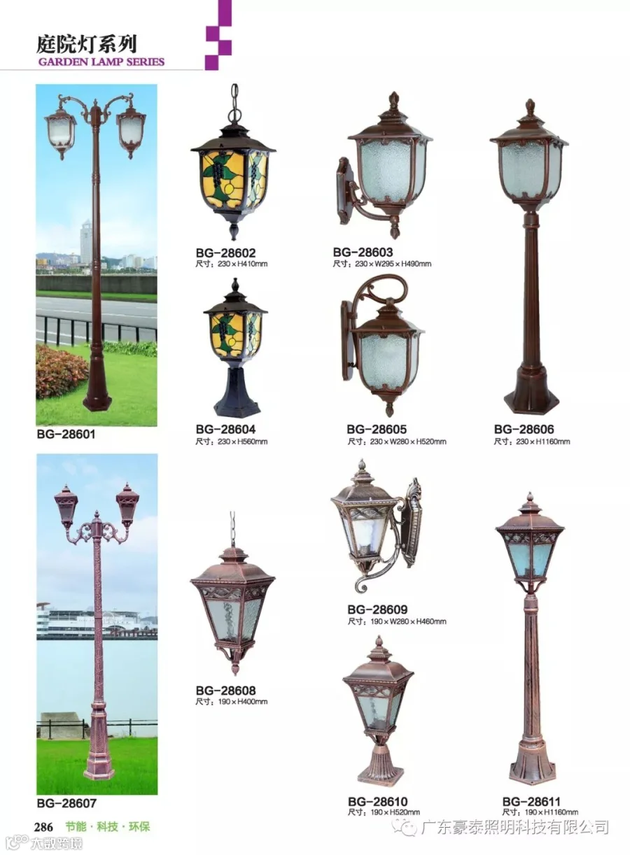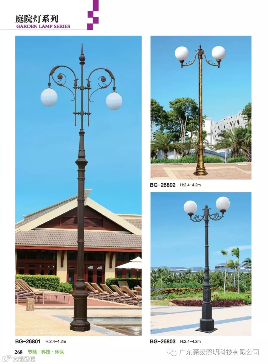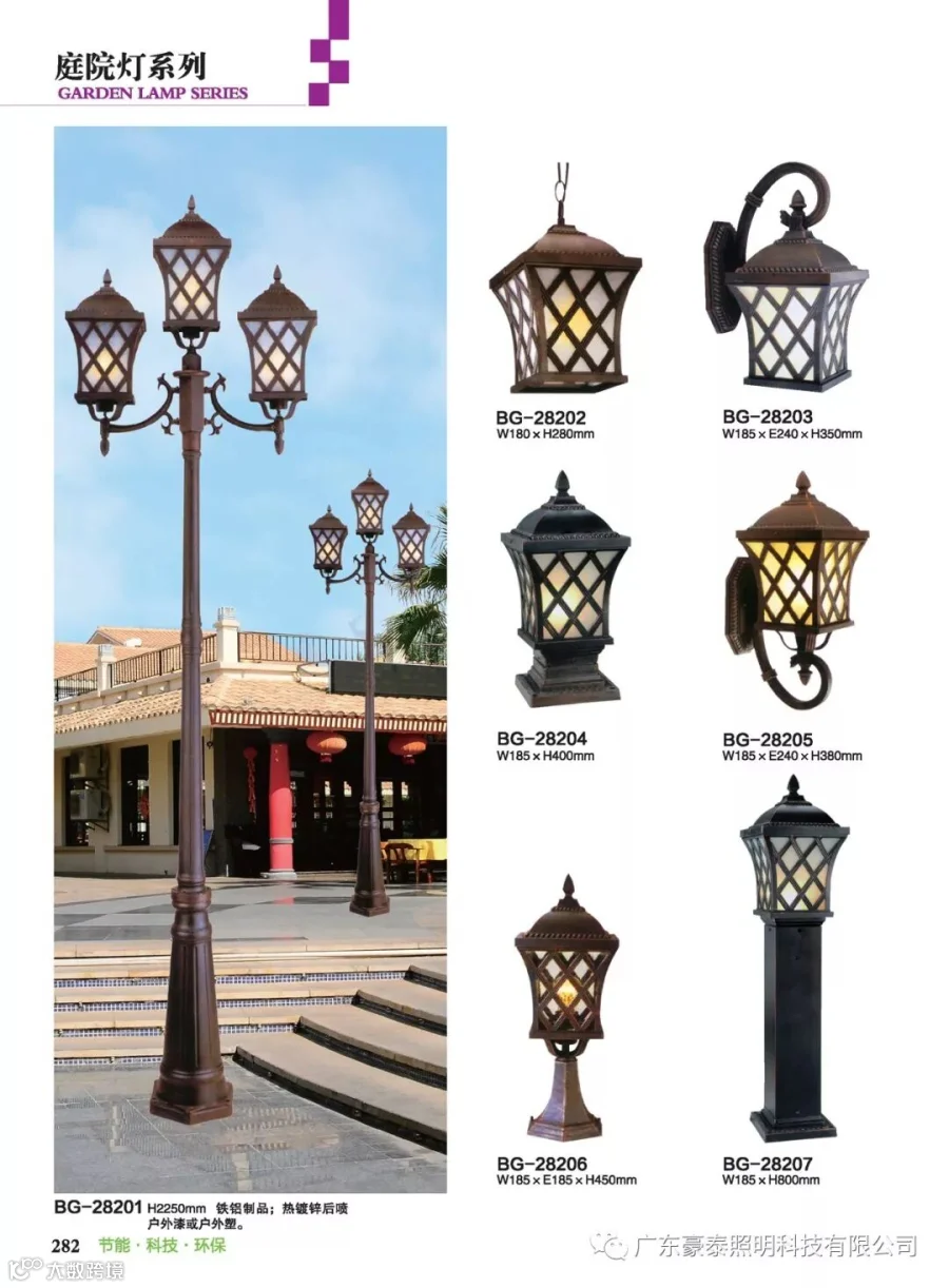这三种类型的庭院灯,代表着不同的风格,也是大多数生产厂家为了迎合城市建筑物的设计风格,衍生而成。
