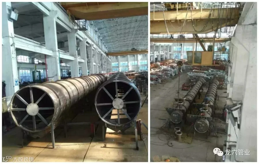 而蒸汽管的加工就更为复杂,每个圆筒直径均超过1米、最大直径达1.5米,所有蒸汽管长度居6-7米间,既要保证焊接的质量,又要确保蒸汽管两两拼接、三三拼接时各蒸汽管的圆度、达到毫无错边、完美拼接,工艺人员、焊接队伍更是加班加点讨论研究拼接方案,还特地请永联公司、监理JORD公司提出了宝贵意见,几路人马通力合作之下,终于顺利通过了业主的报验——十数个庞然大物整整齐齐地放置在车间,是不是特别壮观呢?