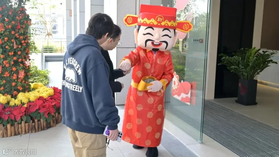 上午员工陆续入园之时,园区工作人员便巧妙地扮成财神爷,身着华丽的传统服饰,手持金元宝,将甜蜜的糖果送到企业员工手中。一颗颗落入手心的糖果和巧克力金币,是园区对大家新一年的美好祝愿,祝愿大家在新的一年里,事业如糖果般甜蜜,生活如糖果般多彩。