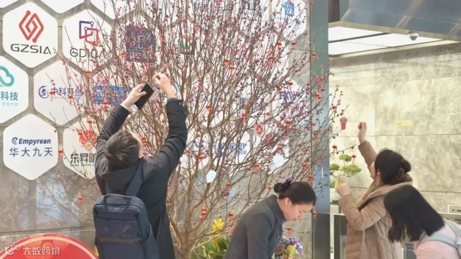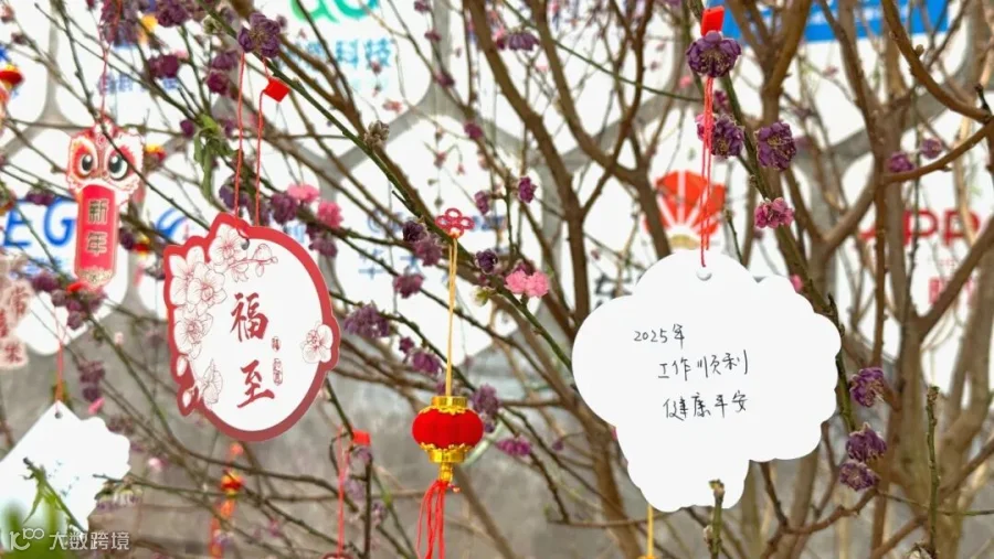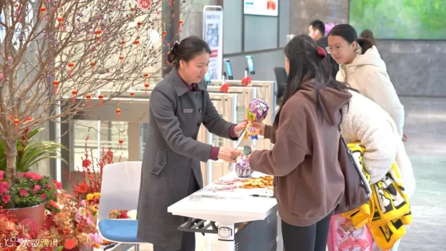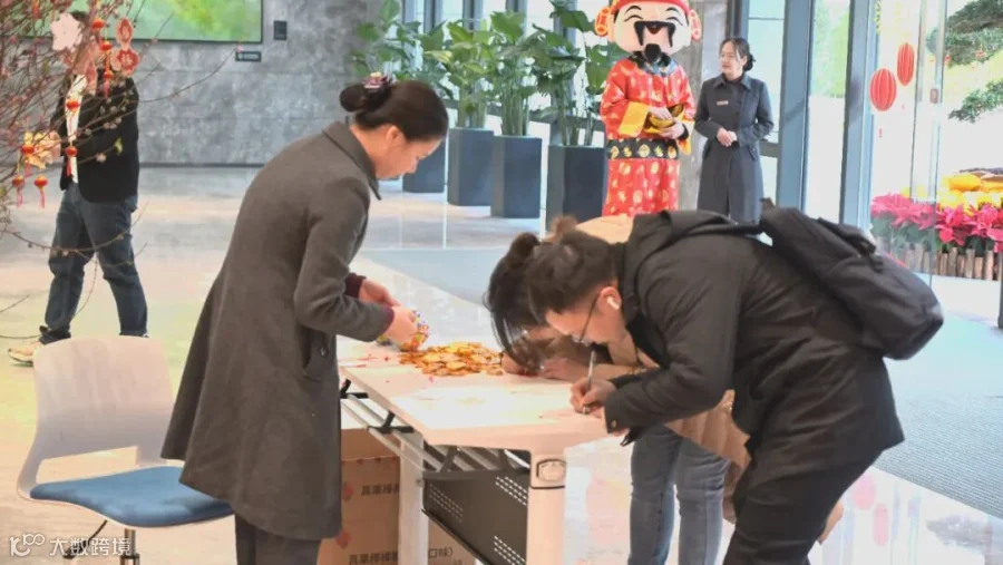 大堂中央特别摆放了一棵寓意吉祥的桃花树,企业员工可在小卡片上写下自己的新年愿望和祝福,并将卡片挂在桃花树上,愿桃花送福,心想事成。每一张卡片都承载着大家对未来的期许:有人希望事业蒸蒸日上,有人期盼家庭幸福美满,有人许愿健康平安……小小的卡片,寄托了满满的心意。挂上卡片后,企业员工还可领取一个超大棒棒糖,寓意新的一年“棒”上有福,好运连连。