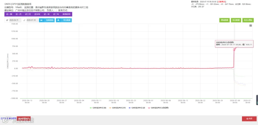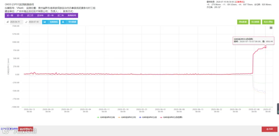 7月初以来,由于雨水不断增多,贵州地质灾害频频上新闻热搜,中海达现场工作人员亦是时刻不敢放松,结合平台异常数据预警,逐一进行数据判断分析,跟进数据实时变化情况。