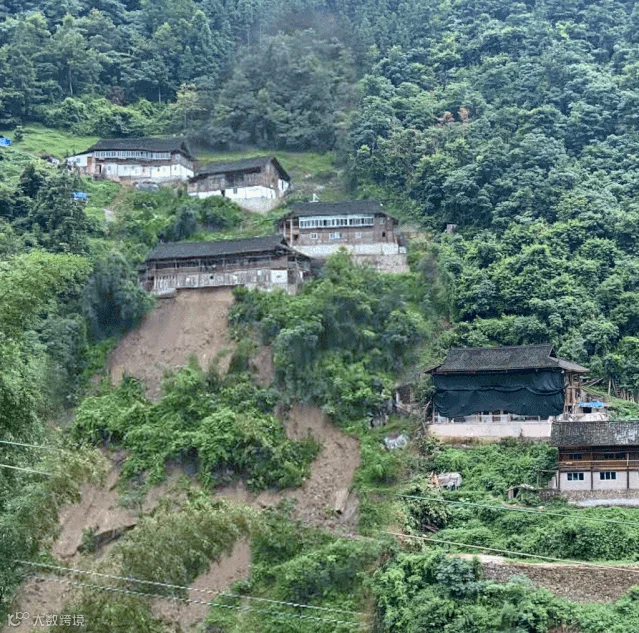 7月10日上午7点,监测设备突然失去数据,现场监测员看到后即刻反馈:预测中的二次滑坡事故发生了!项目经理立马带着人员到项目现场查看,果不其然,现场发生了比第一次更为严重的滑坡!在原本遍布树木的山头上,一条深壑的滑沟赫然出现在眼前,树木被悉数冲入山脚的河里,原本位于滑沟中的三栋房子,也被冲刷得无影无踪,不剩残垣片瓦。此前,立在山头守护村民的两座GNSS监测站,一座被直接掩埋,另一座则被冲到了山底不见踪影!可见二次滑坡发生时破坏力之大。