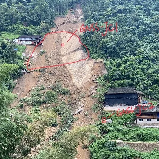 2020年7月4日凌晨,贵州省黔东南州丹寨县扬武镇基加村老寨组发生一起滑坡地质灾害,4栋18间房屋受损,直接经济损失约120万元。7月10日中海达GNSS监测站再次监测到数据发生异常,该隐患点发生二次滑坡,直接冲毁倒塌3栋房屋。由于监测员和村干部巡排查到位,设备提前发生预警,避险撤离及时,此次滑坡灾害未造成人员伤亡。