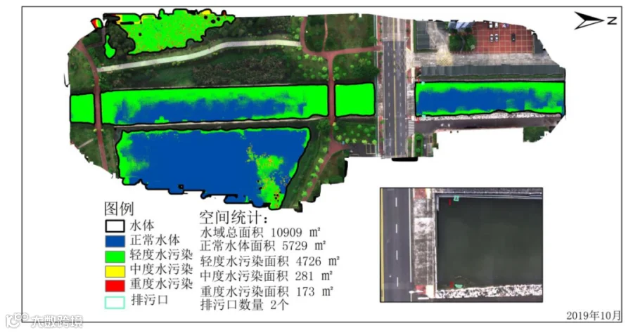 针对“美丽中国”水体洁净指标,可采用无人机挂载多光谱载荷进行巡检,发挥无人机机动、灵活、大面积快速作业的优势,对河道水污染、漂浮物、疑似污染源、河岸线生态等指标进行快速定性分析,并成图直观展示,打造河道精准监测平台。