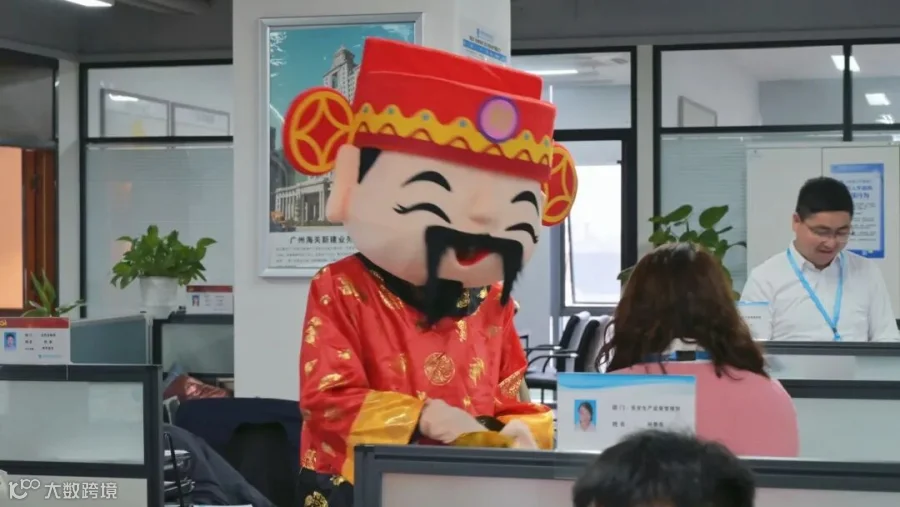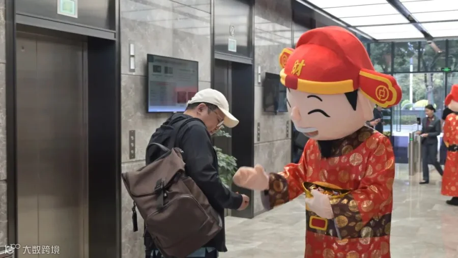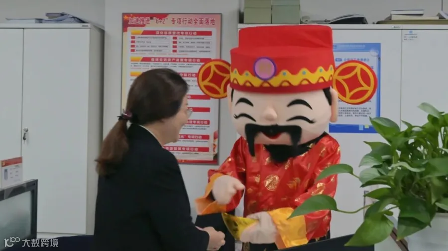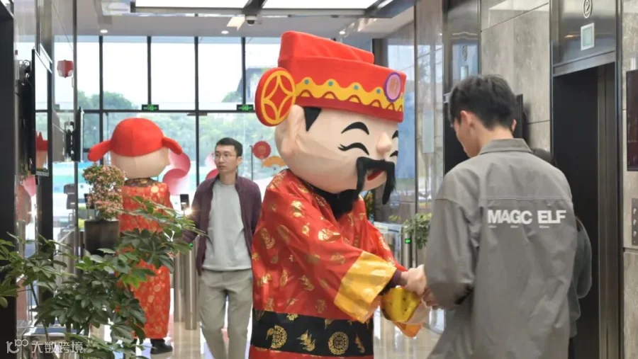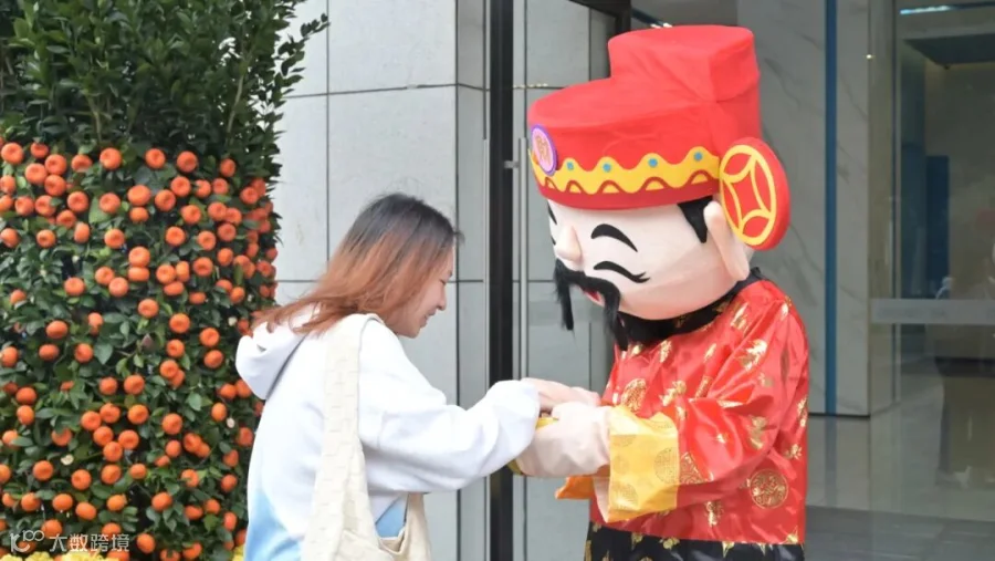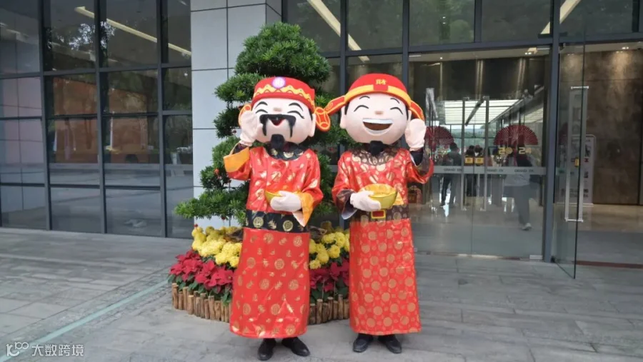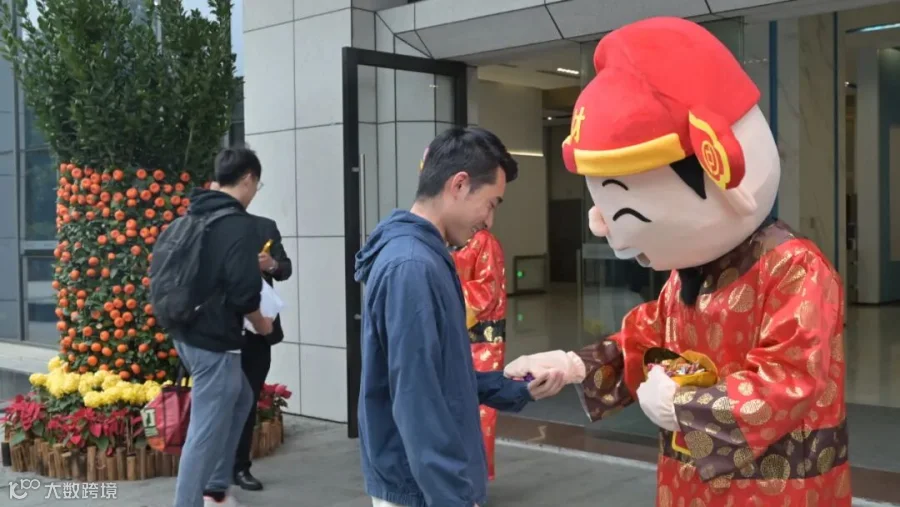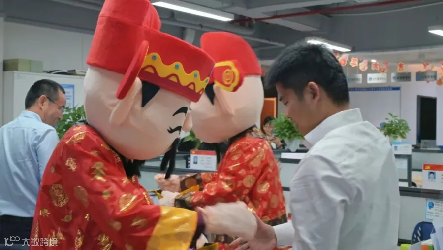 园区工作人员便身穿“财神”服