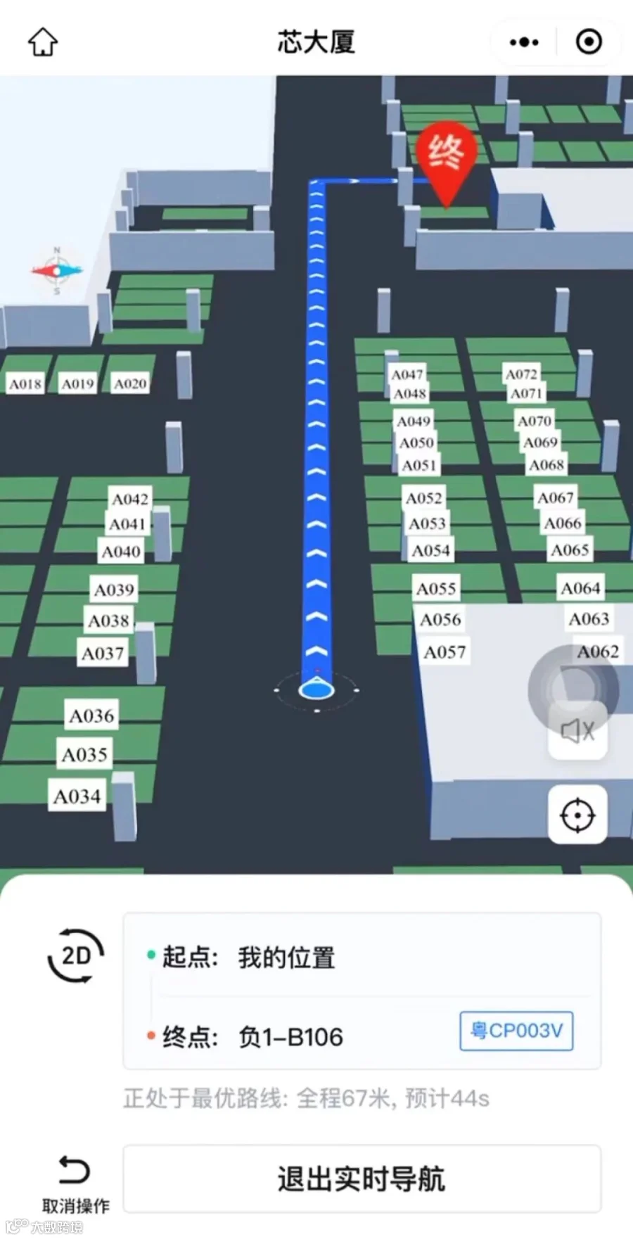 车主需要开车离开时,只需扫码即可看到车辆停放楼层、区域及车位编号等信息,并可点击开启寻车导航,系统将自动获取车主所在位置,推荐一条最佳路线,指引车主快速找到车辆停放的准确位置,节省寻车时间,提高寻车效率。