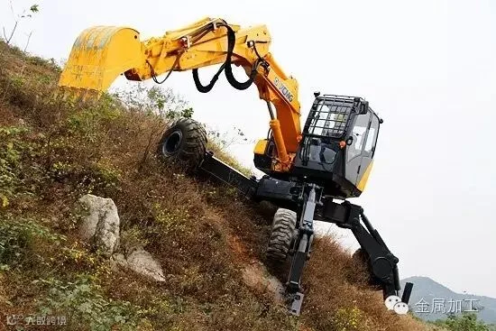 没错,就是徐工的ET110步履式挖掘机。ET110是一种可在高原、平原地区使用的、能适应各种地形、多用途的步履式挖掘机。特别适合于在山地、林地、湿地等特殊环境条件下进行工程施工和抢险施工,也可用于市政工程、水利工程施工中一般设备不能使用的场合。