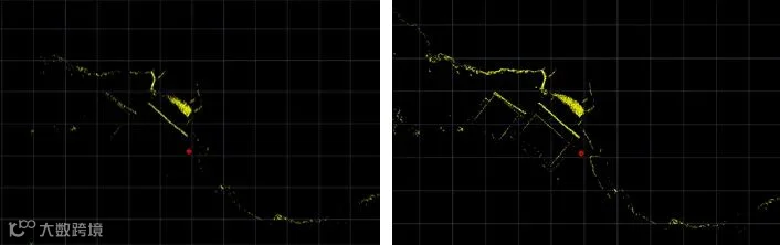 ▲无SLAM点云切片图 ▲有SLAM点云切片图
