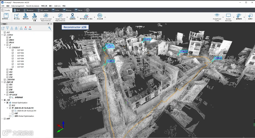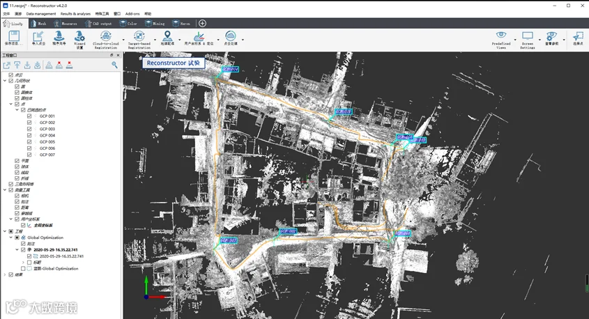 6、无需初始化设置,无需闭环采集,通过少量均匀分布的控制点,保持整体点云精度,大大提高测量效率。