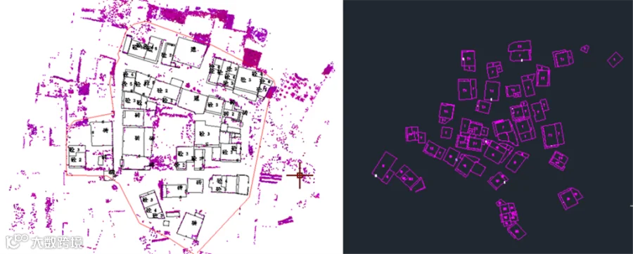 1、采用激光扫描采集地表地籍要素时,可以将房屋用任意高度切断面,房屋边界以矢量点的形式呈现,可以更直观的判断墙面位置,减少判断过程。
