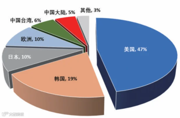 2019年世界半导体市场的区域分布 数据来源:WSTS