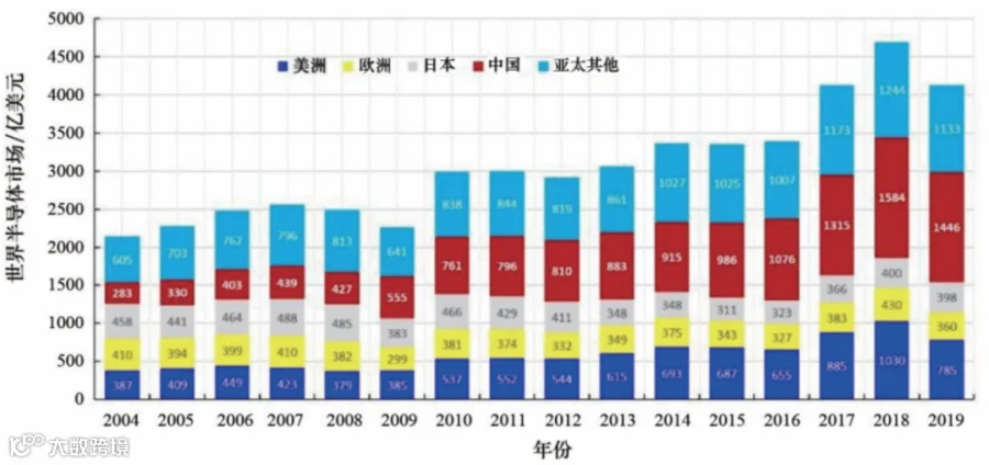 2019年,中国半导体市场规模为1446亿美元(实际消费部分),占世界市场的35%。