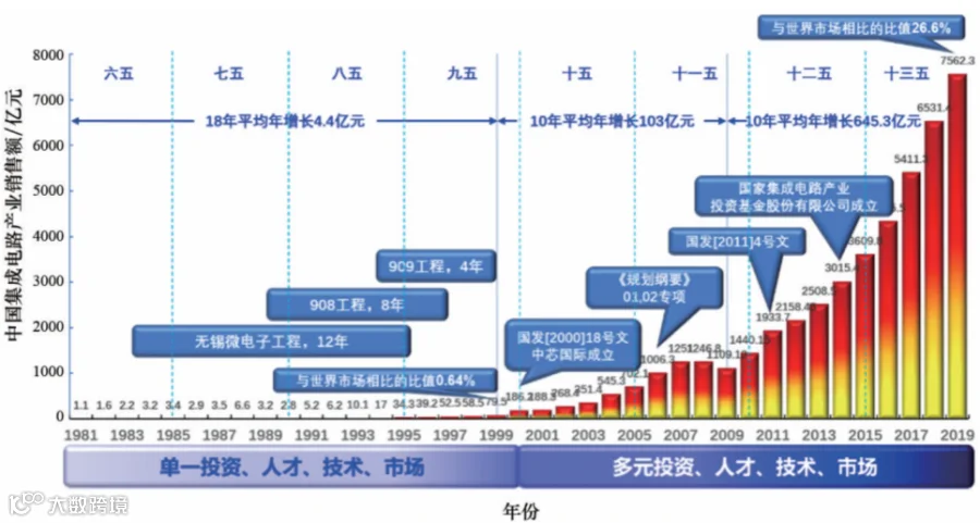 2011年1月28日《国务院关于印发进一步鼓励软件产业和集成电路产业发展若干政策的通知(国发〔2011〕4号)》的发布和2014年“国家集成电路产业投资基金股份有限公司”的成立是最重要的驱动力。