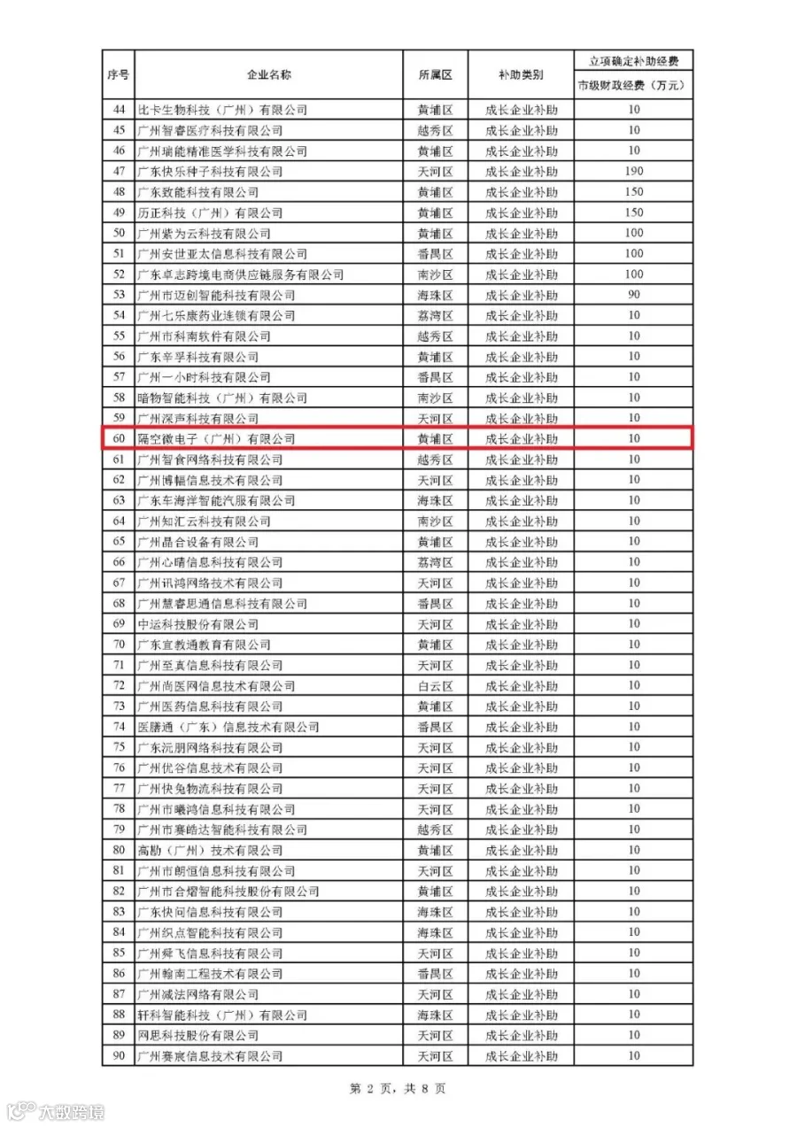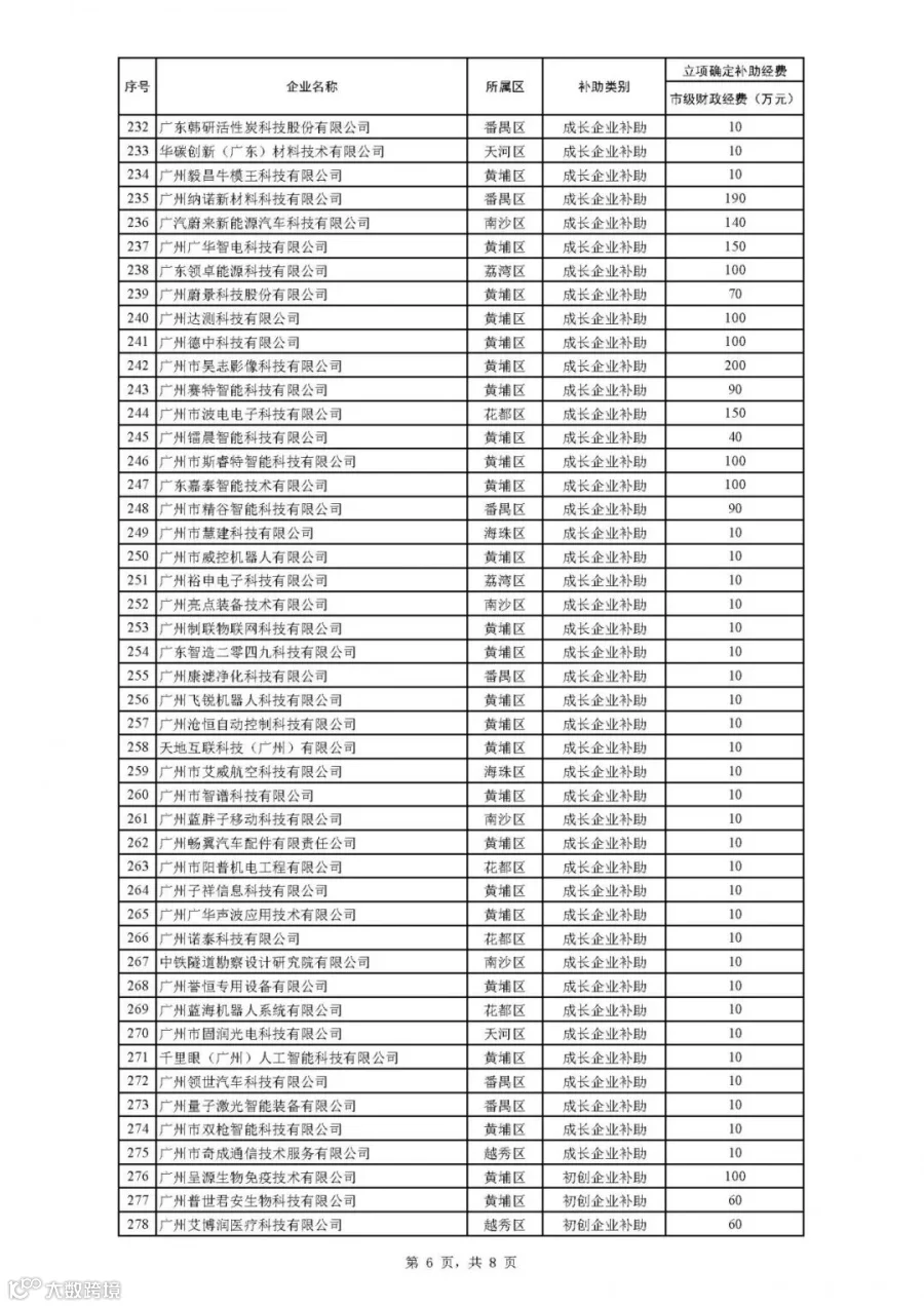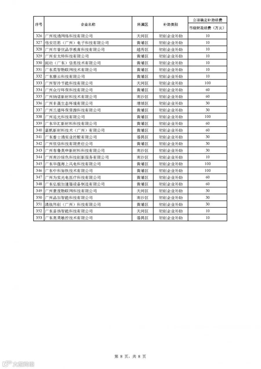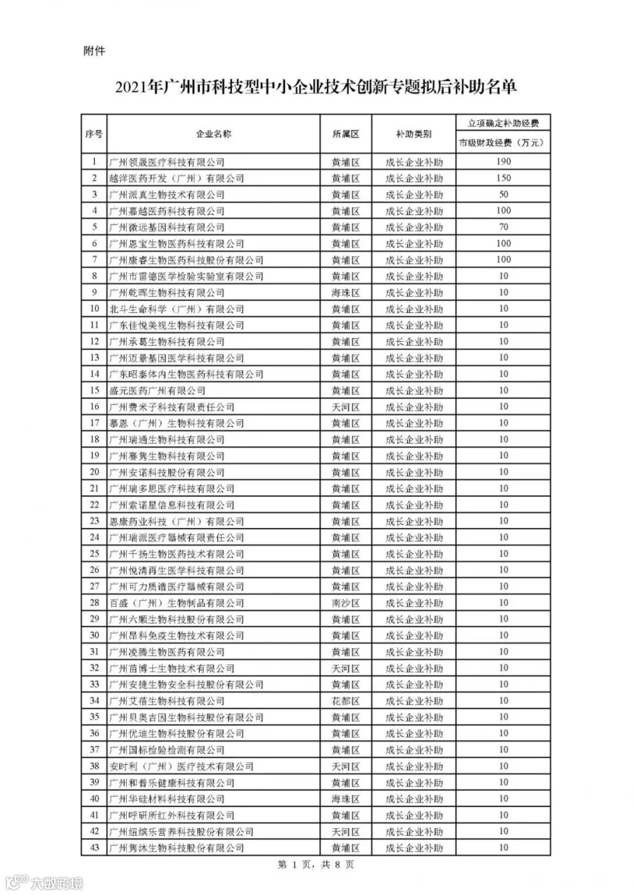 2021年广州市科技型中小企业技术创新专题拟后补助名单公示