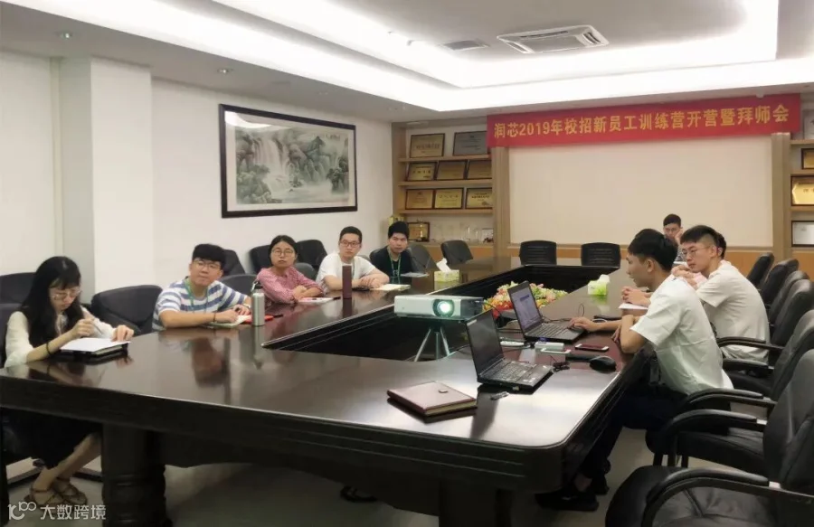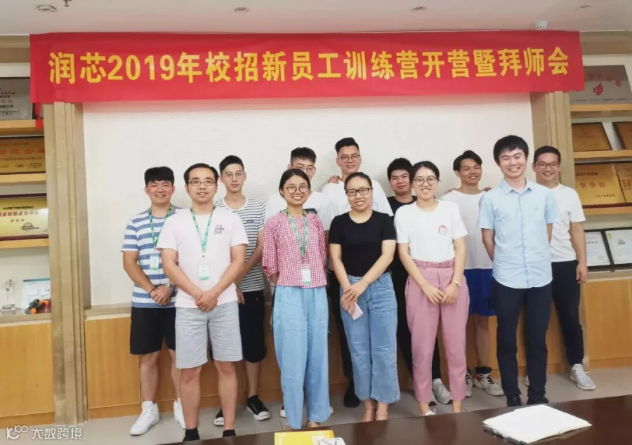 7月29日,广州润芯“2019届校招新员工训练营开营暨拜师会”在642会议室正式召开,由此公司2019届校招新员工训练营正式拉开序幕,9名新员工参加了此次新人训练营。