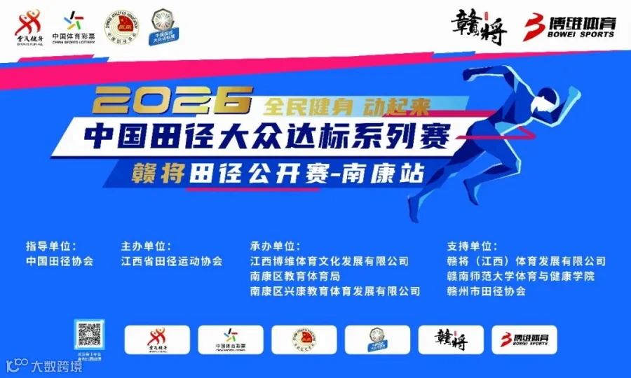 2026年3月21-22日,中国田径大众达标系列赛暨2026赣将田径公开赛(南康站)将在赣州市南康区体育公园田径场拉开帷幕!