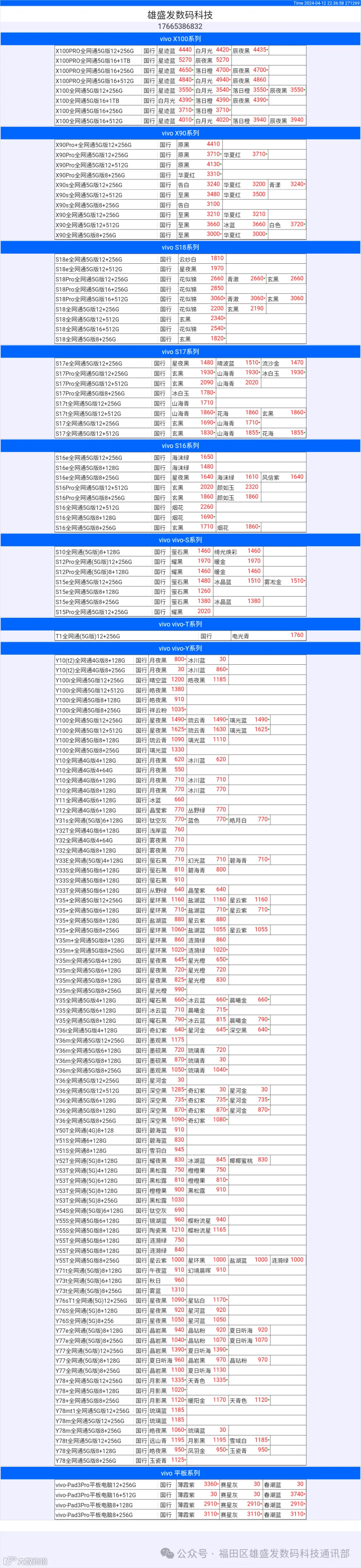 新机报价【2024年4月12日】OPPO   VIVO  IQOO   一加   真我 芯烨微 电子科技