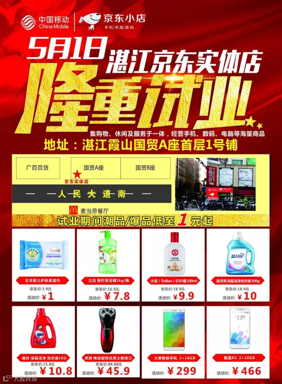5月1日来湛江霞山国贸A座京东实体店 燥起来!