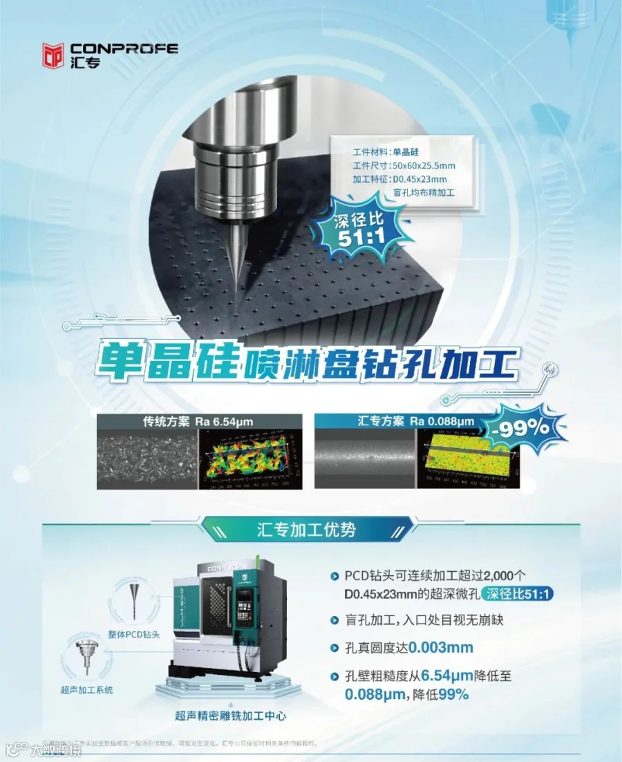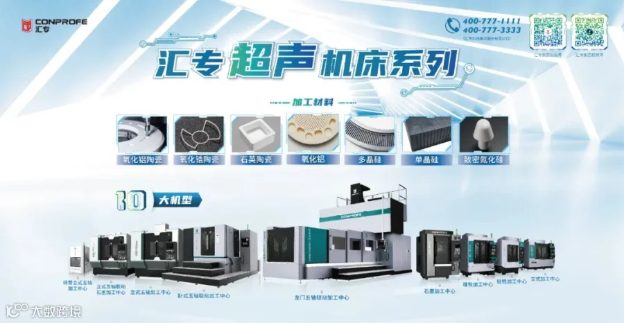 汇专在现场展示了涵盖高端超声数控机床、超声技术、超硬刀具、精密转台等创新产品与技术,满足客户对不同加工工艺和设备的需求。