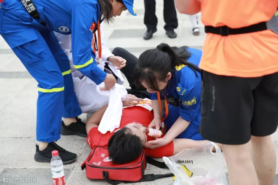 赛道上的蓝色风景线蓝天救援队