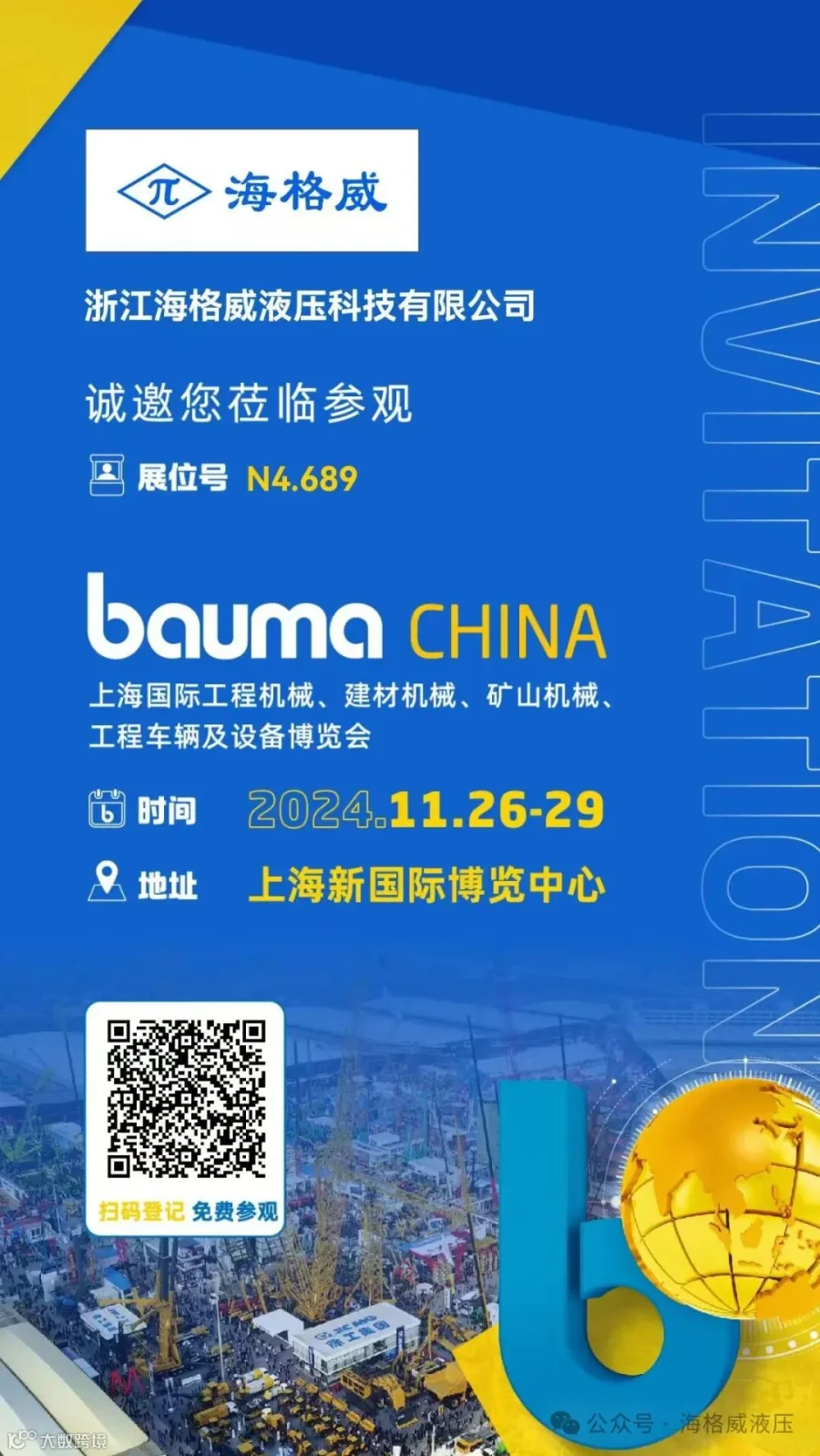 亚洲最具规模的工程机械行业展会——上海宝马展(baumaChina 2024)将于11月26日-29日在上海新国际博览中心盛大开幕。海格威将在N4馆(N4.689)迎接新老朋友光临!