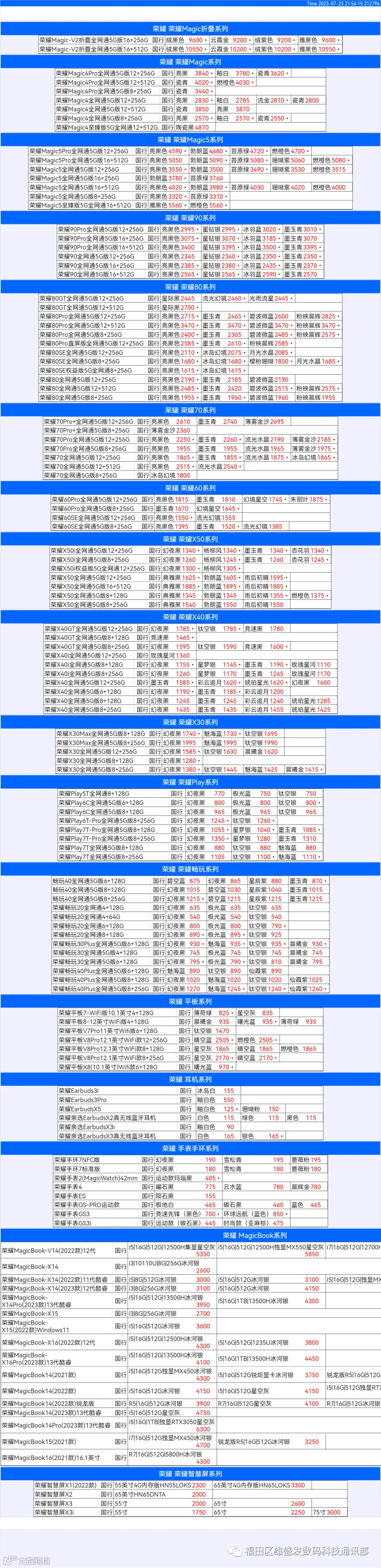 新机报价【2023年7月23日】华为   荣耀 报价 芯烨微 电子科技