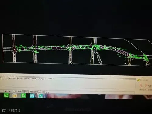 首先在计算机上编辑该市政道路,仅保留道路的基本构成因素:道路交叉口、河流沟渠、陡坎池塘、红线、侧石线、中线、以及其它已知的重要地貌地物。并用道路设计软件编辑中线桩号。根据地形复杂程度,桩号间距20米或25米,并转存为DXF格式备用。考虑手薄内存,文件要尽量小,主要构成因素清晰明了即可。