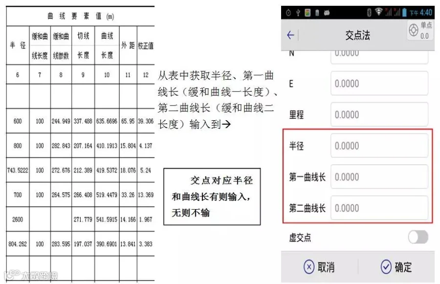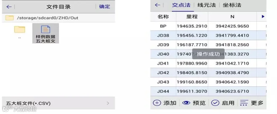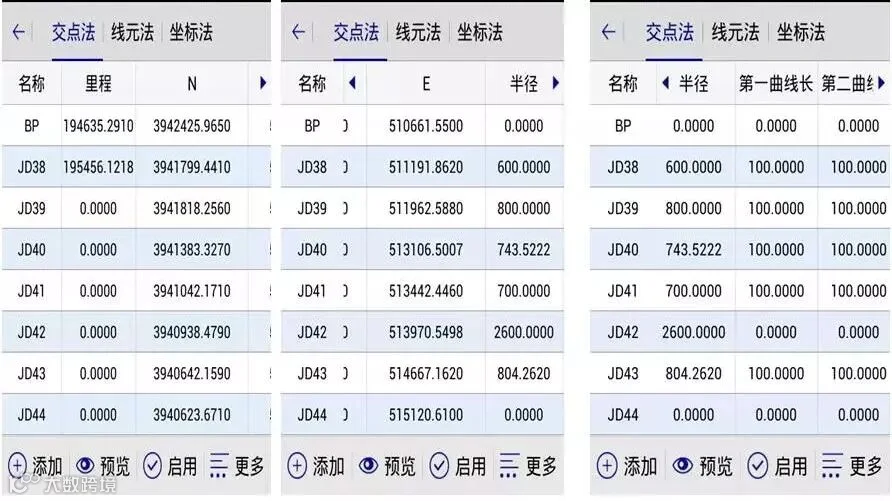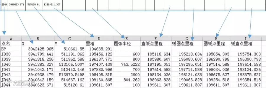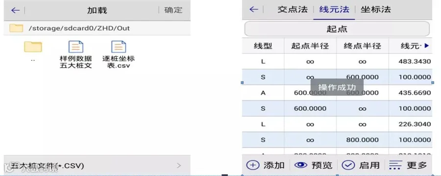 直曲表中对应的列粘贴复制到上面对应列下,保存为五大桩csv格式,直接在交点法输入界面使用加载即可快速进行数据的初始化录入。