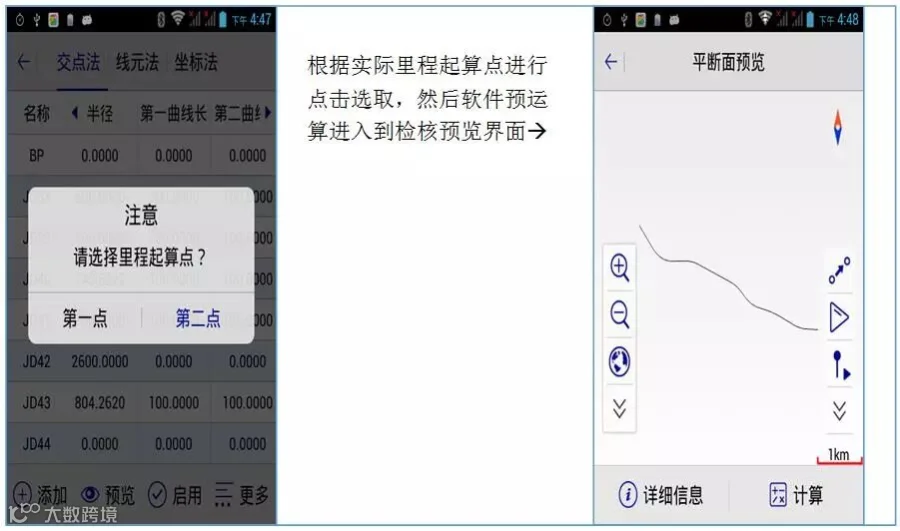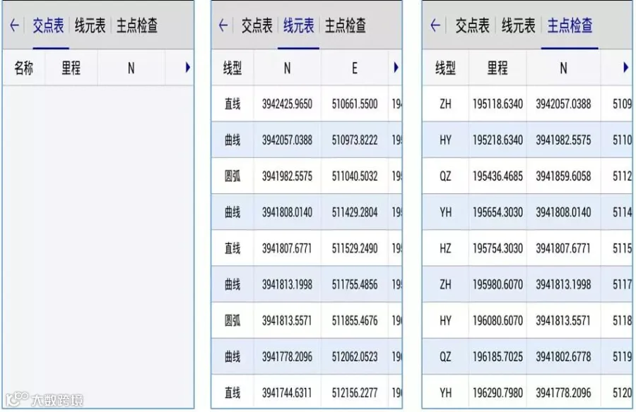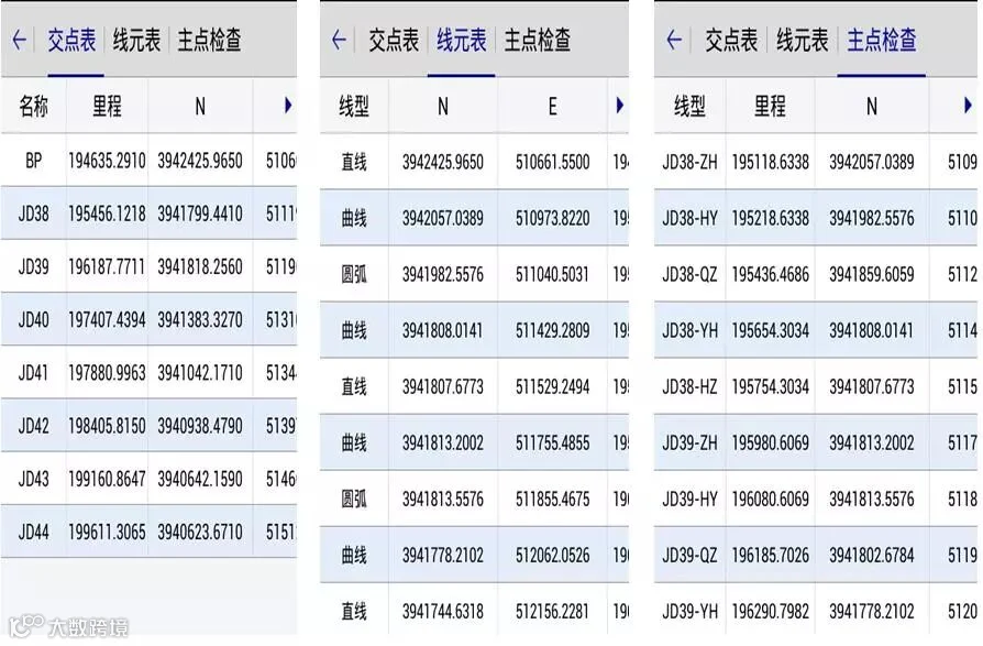 使用详细信息按钮可以查看预运算出来的交点、线元和主点详细信息