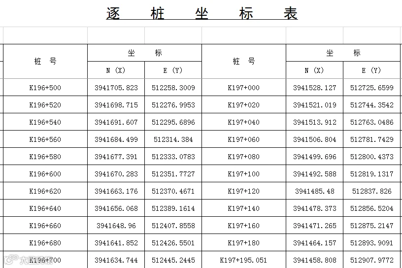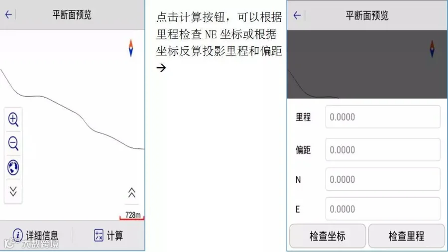使用计算按钮可以进行逐桩坐标的里程与NE正反算