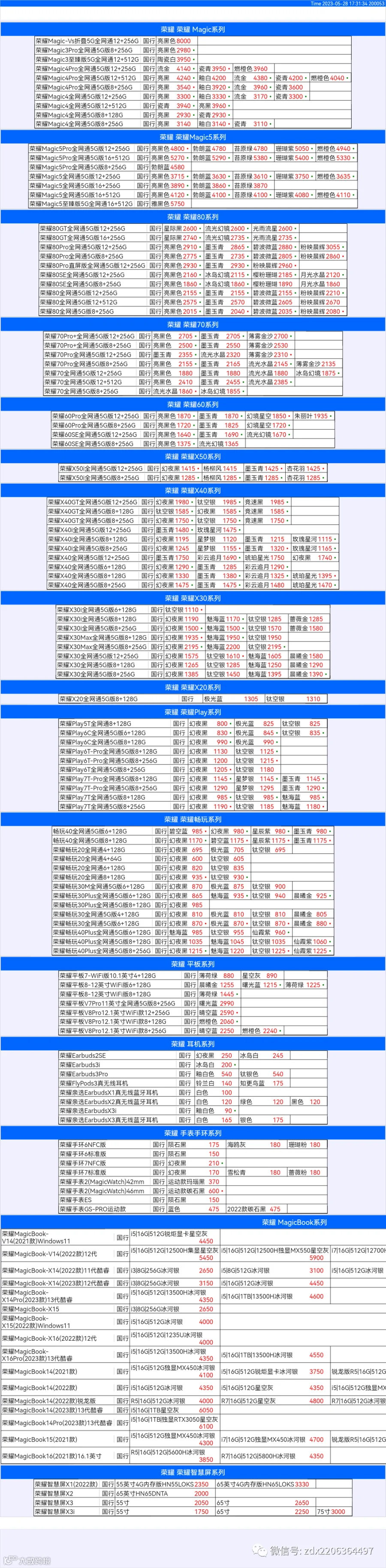 新机报价【2023年5月28日】华为   荣耀 报价 芯烨微 电子科技