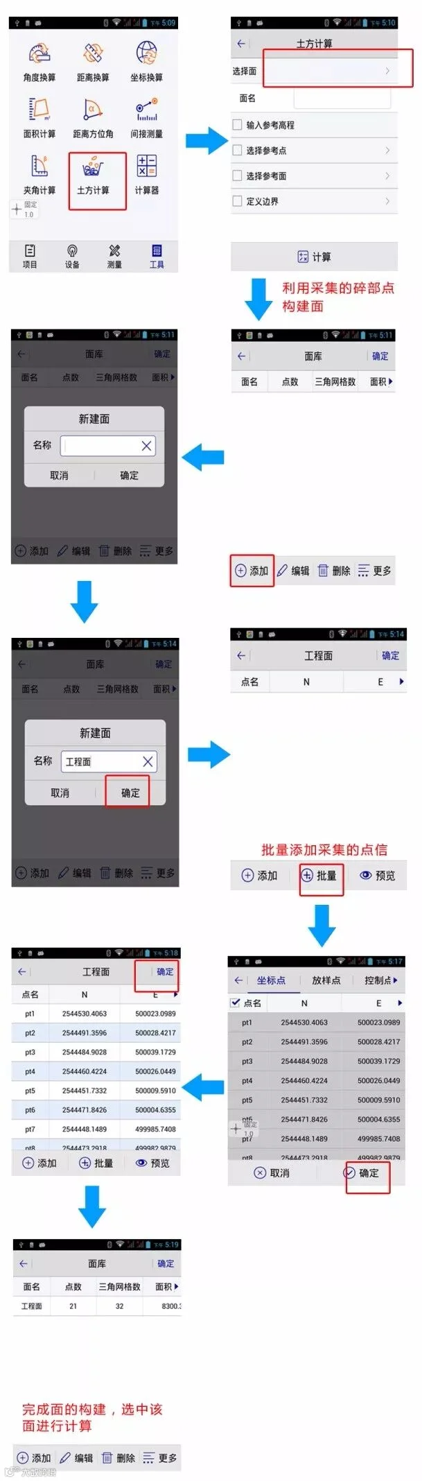 iRTK5配置的iHand30手簿全新升级了Hi-Survey软件,新增DTM面相关的功能,内含土方计算、面放样、面设计等功能,下面一起来看看iRTK5配合Hi-Survey软件是怎么进行土方计算的。