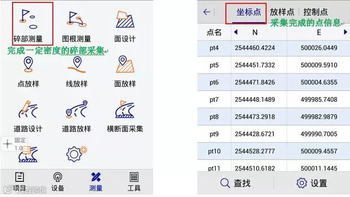 到达指定拟计算的土方区域后,首先要结合项目现场,勘验作业环境,明确工程测量范围,其次是初步根据地势起伏的情况,土样分布状况等,评估采点作业密度。确认满足作业条件后,就可以开始连接基站,达到固定解后进行作业了。