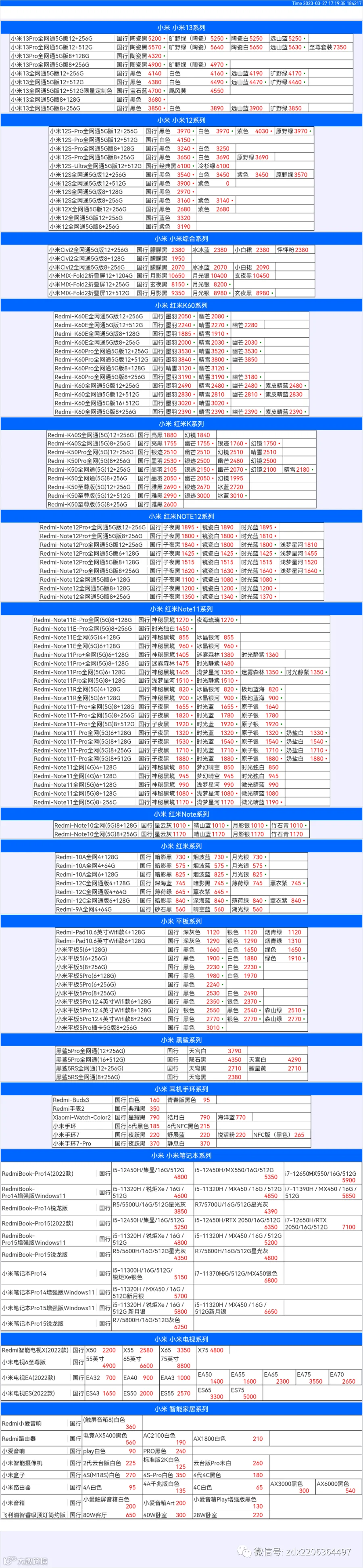 新机报价【2023年3月27日】小米  红米   黑鲨   报价 芯烨微 电子科技