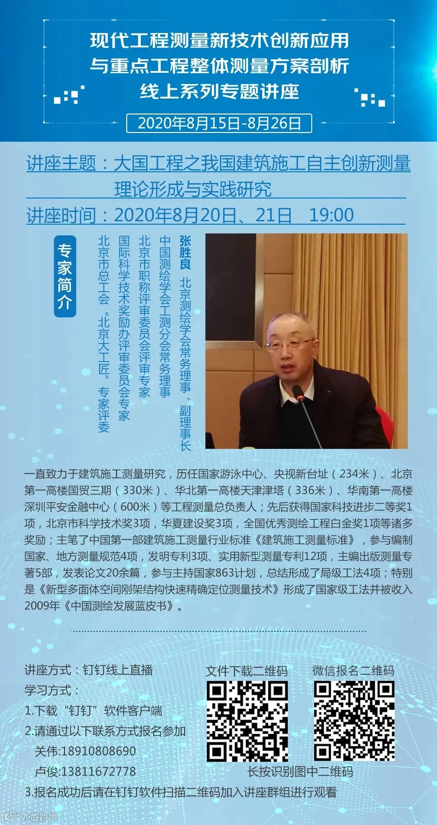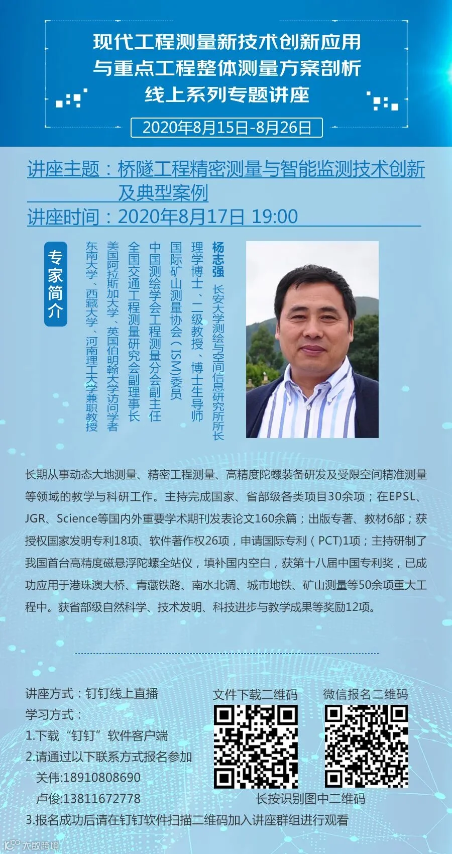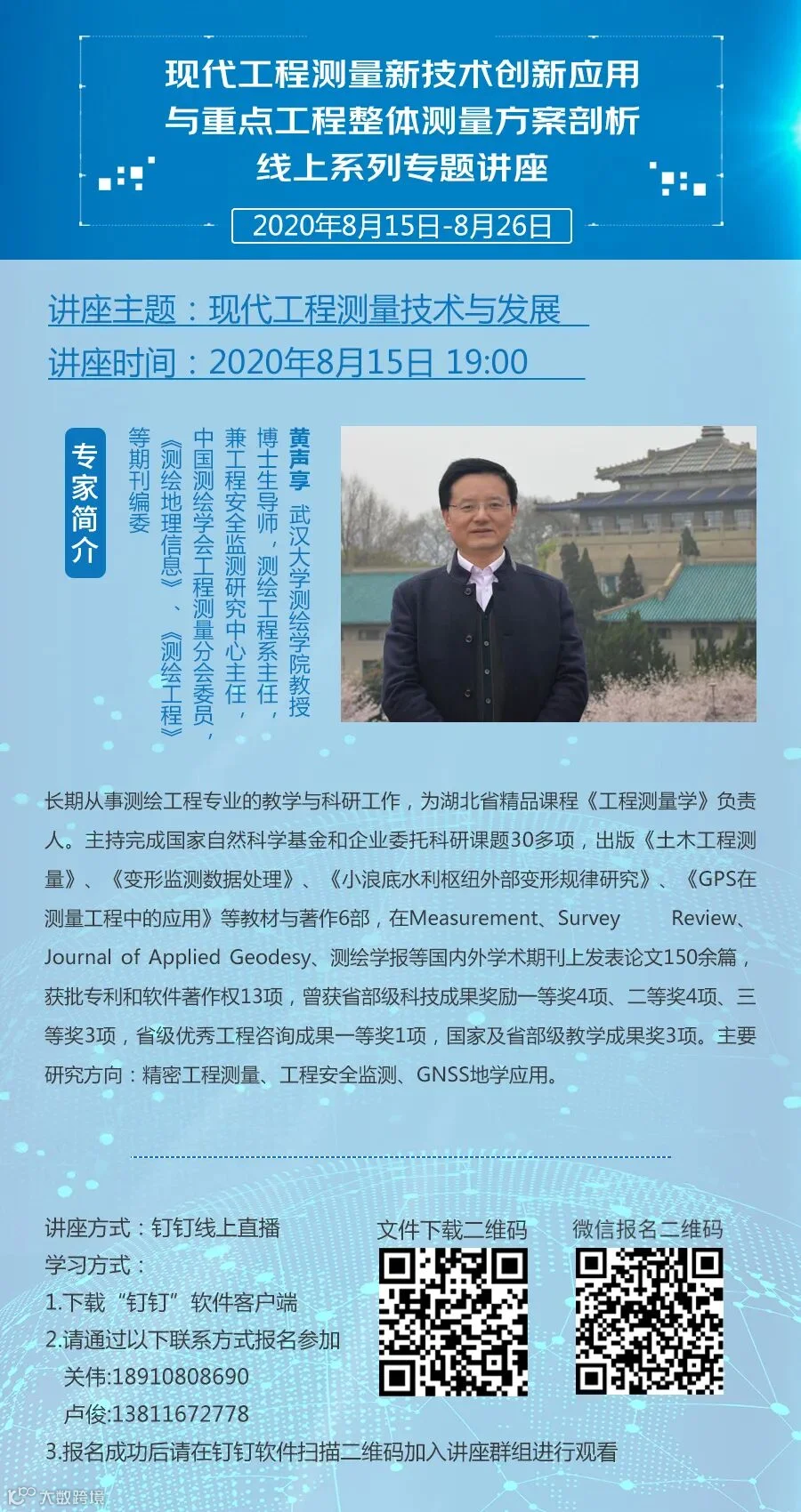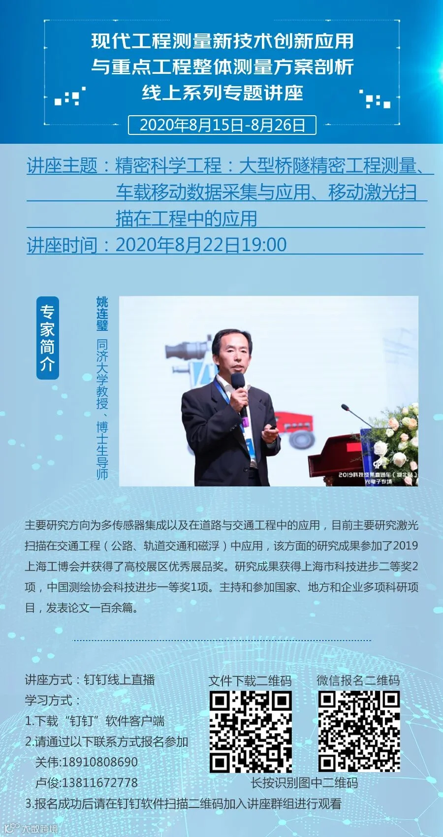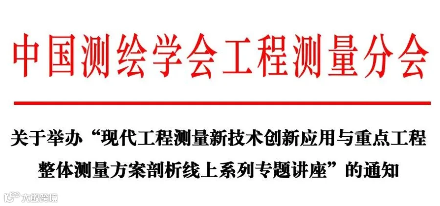 在当前新冠疫情防控形势依然严峻的态势下,为了推进现代工程测量新技术的创新应用,了解典型工程整体测量方案的实施,促进行业学术交流,总结和发展近年来最新研究成果,研判行业发展趋势,在中国测绘学会的指导下,中国测绘学会工程测量分会决定举办“线上系列专题讲座”。