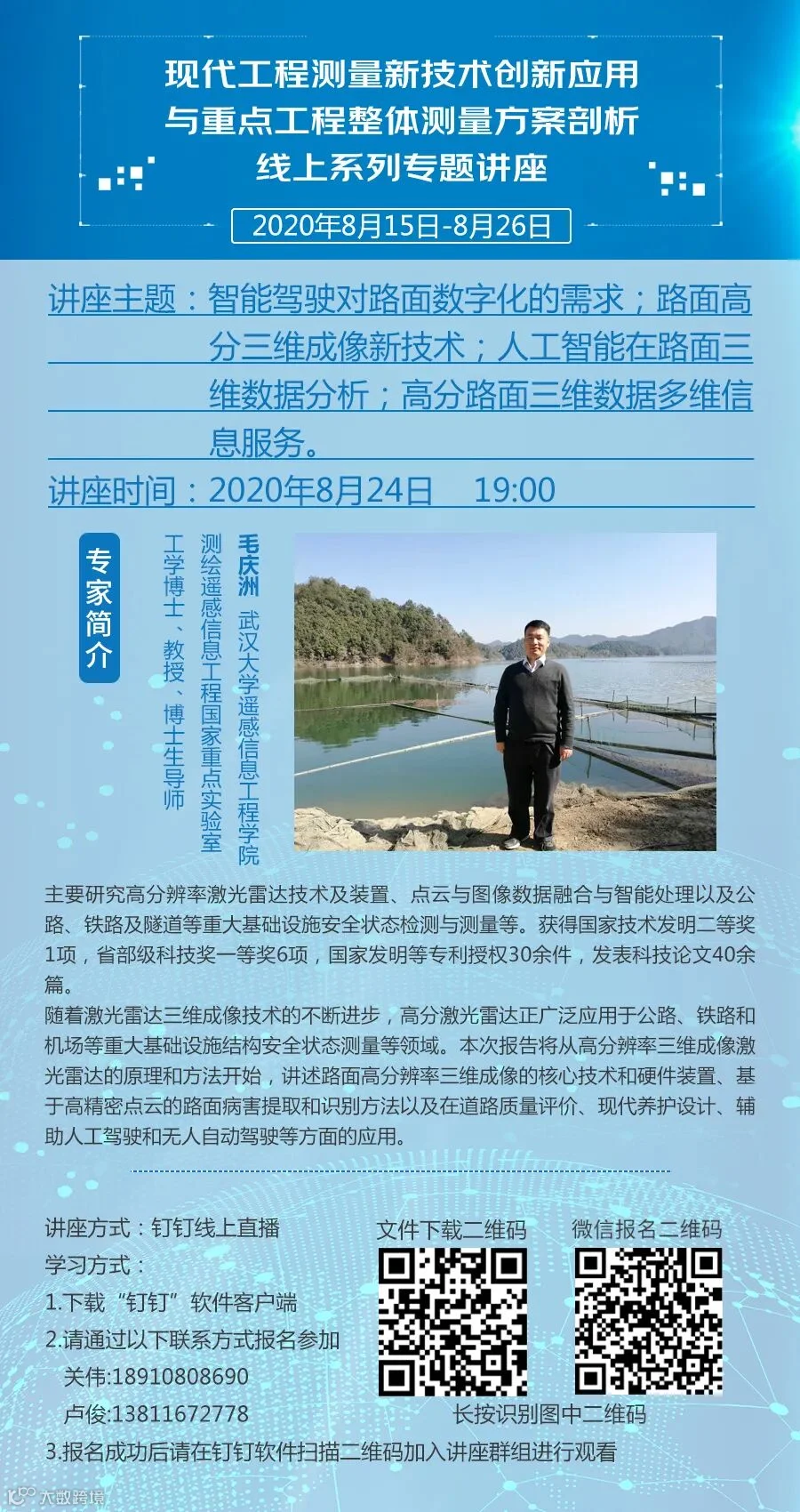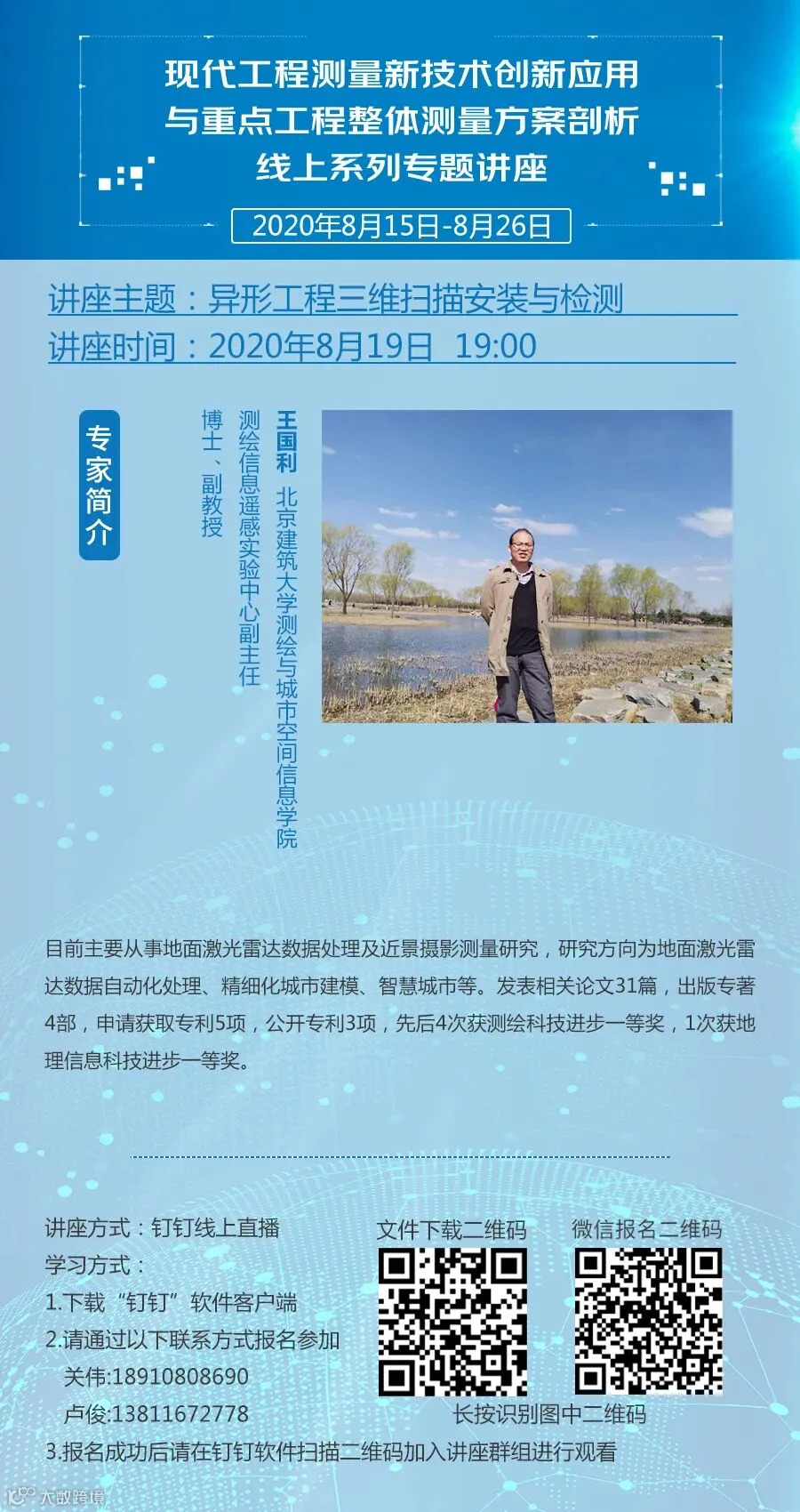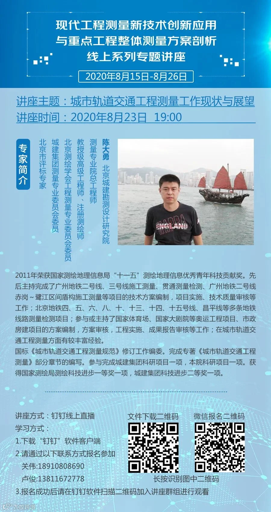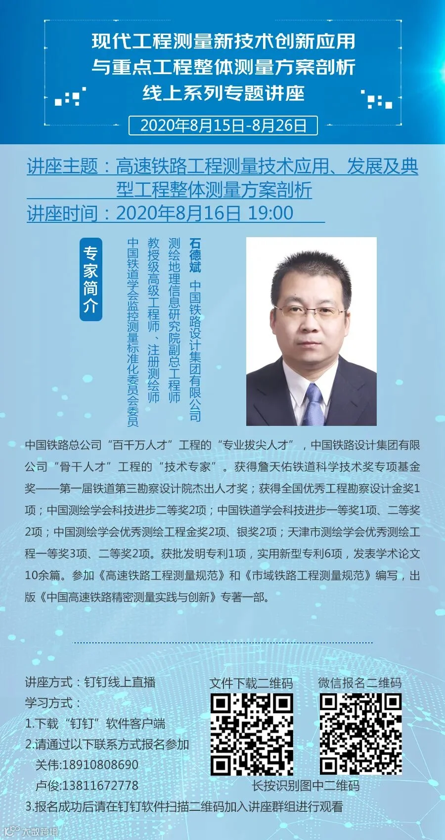 在当前新冠疫情防控形势依然严峻的态势下,为了推进现代工程测量新技术的创新应用,了解典型工程整体测量方案的实施,促进行业学术交流,总结和发展近年来最新研究成果,研判行业发展趋势,在中国测绘学会的指导下,中国测绘学会工程测量分会决定举办“线上系列专题讲座”。