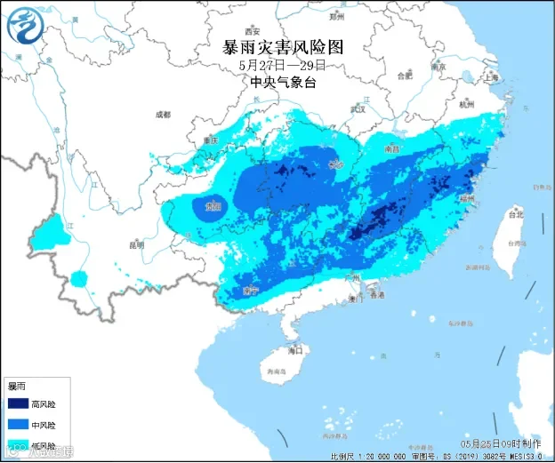 5月27日至29日,南方地区将出现新一轮强降雨过程,华南等地有大到暴雨,江南南部、华南北部等地的部分地区有大暴雨,局地有特大暴雨;其中广东北部等地累计降雨量有80~180毫米、局地300~350毫米;上述地区有短时强降雨,局地伴有雷暴大风、冰雹等强对流天气。