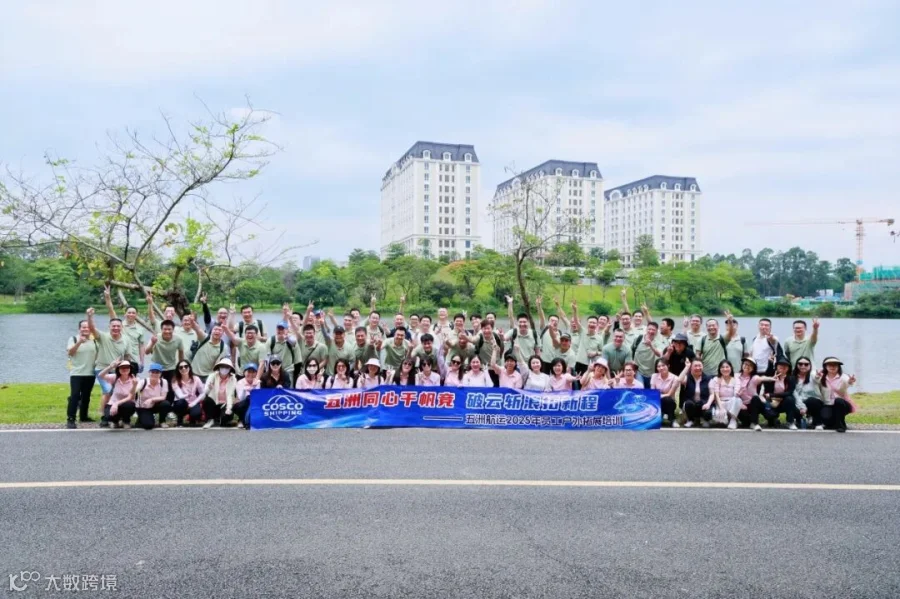 2025年的时光进度条已过 1/3,而余下的2/3征程依然充满未知与突破。5月10日上午,近百名五洲航运员工齐聚松山湖湖畔,以"五洲同心千帆竞,破云斩浪拓新程"为主题开展了2025年第一场户外拓展培训,携手为团队年度目标按下加速键! 远处青山如黛,近处水波粼粼,在如画的风景中,五洲人再一次共同镌刻下团队协作的欢乐记忆。